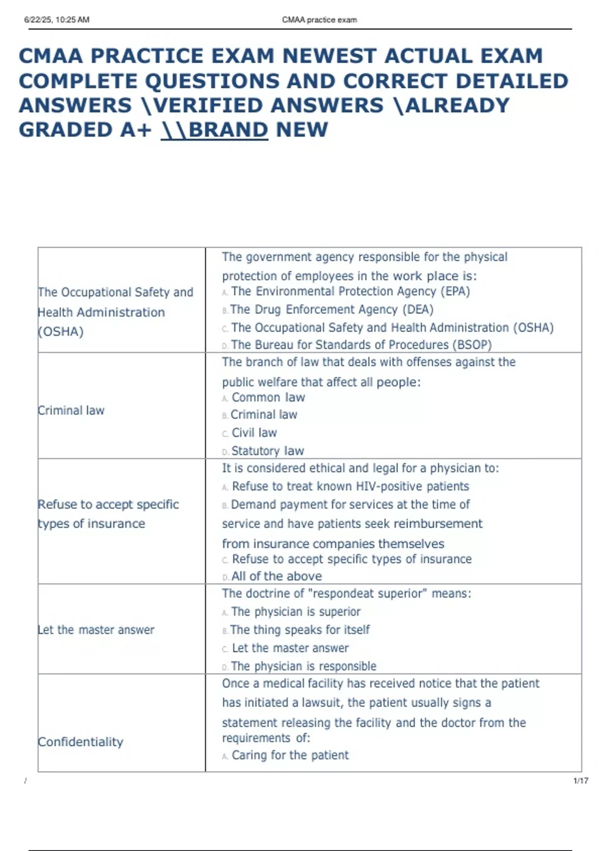 CMAA PRACTICE EXAM NEWEST ACTUAL EXAM COMPLETE QUESTIONS AND CORRECT DETAILED ANSWERS VERIFIED ANSWERS ALREADY GRADED A+ BRAND NEW CMAA PRACTICE EXAM NEWEST ACTUAL EXAM COMPLETE QUESTIONS AND CORRECT DETAILED ANSWERS VERIFIED ANSWERS ALREADY GRADED A+ BRAND NEW CMAA PRACTICE EXAM NEWEST ACTUAL EXAM COMPLETE QUESTIONS AND CORRECT DETAILED ANSWERS VERIFIED ANSWERS ALREADY GRADED A+ BRAND NEW CMAA PRACTICE EXAM NEWEST ACTUAL EXAM COMPLETE QUESTIONS AND CORRECT DETAILED ANSWERS VERIFIED ANSWERS ALREADY GRADED A+ BRAND NEW CMAA PRACTICE EXAM NEWEST ACTUAL EXAM COMPLETE QUESTIONS AND CORRECT DETAILED ANSWERS VERIFIED ANSWERS ALREADY GRADED A+ BRAND NEW CMAA PRACTICE EXAM NEWEST ACTUAL EXAM COMPLETE QUESTIONS AND CORRECT DETAILED ANSWERS VERIFIED ANSWERS ALREADY GRADED A+ BRAND NEW CMAA PRACTICE EXAM NEWEST ACTUAL EXAM COMPLETE QUESTIONS AND CORRECT DETAILED ANSWERS VERIFIED ANSWERS ALREADY GRADED A+ BRAND NEW CMAA PRACTICE EXAM NEWEST ACTUAL EXAM COMPLETE QUESTIONS AND CORRECT DETAILED ANSWERS VERIFIED ANSWERS ALREADY GRADED A+ BRAND NEW CMAA PRACTICE EXAM NEWEST ACTUAL EXAM COMPLETE QUESTIONS AND CORRECT DETAILED ANSWERS VERIFIED ANSWERS ALREADY GRADED A+ BRAND NEW CMAA PRACTICE EXAM NEWEST ACTUAL EXAM COMPLETE QUESTIONS AND CORRECT DETAILED ANSWERS VERIFIED ANSWERS ALREADY GRADED A+ BRAND NEW