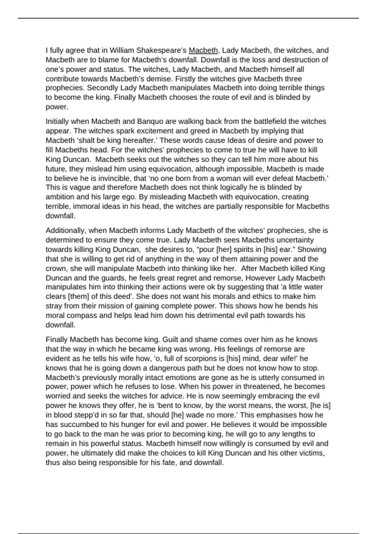 Macbeth are to blame for Macbeth’s downfall. Downfall is the loss and destruction of