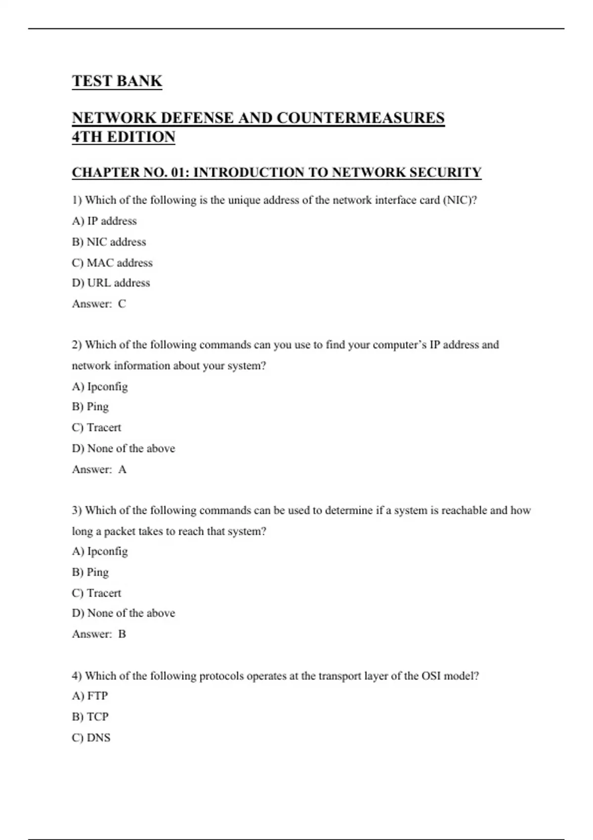 1) Which of the following is the unique address of the network interface card (NIC)?