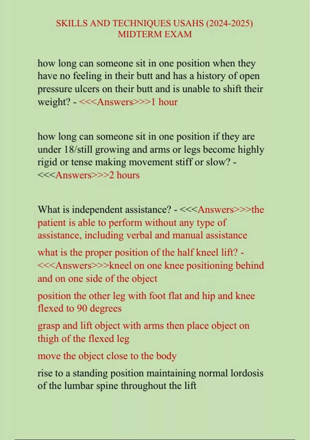 what is the proper position of the half kneel lift? -