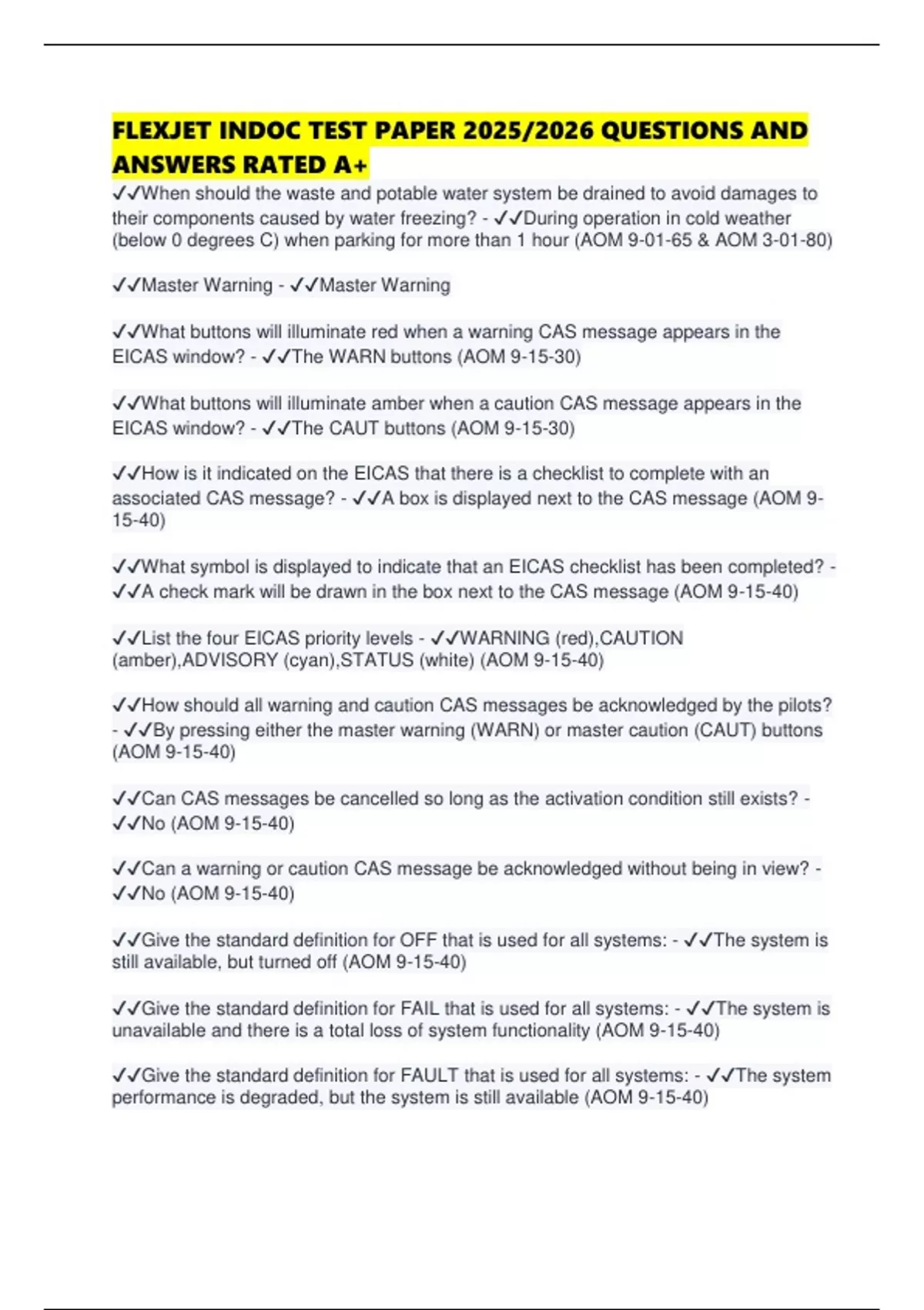 associated CAS message? - ✔✔A box is displayed next to the CAS message (AOM 9-