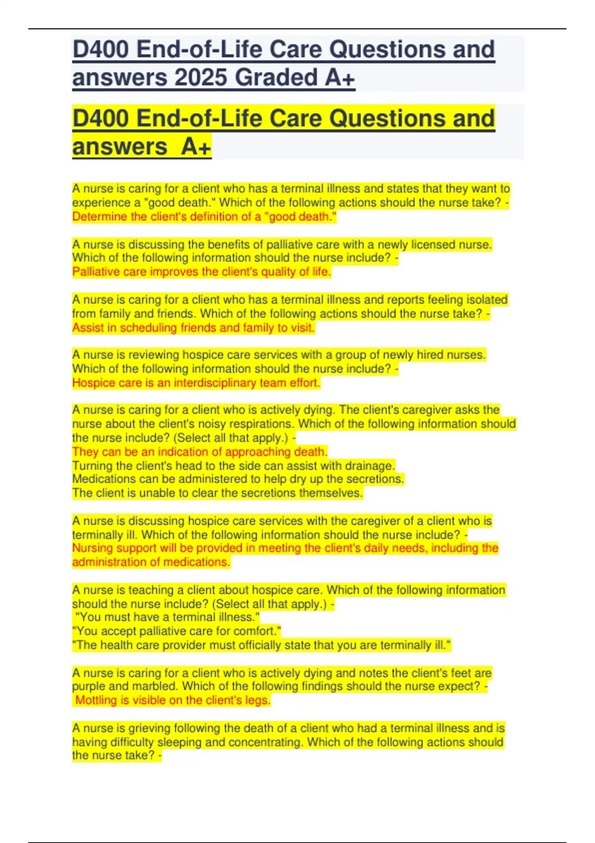 D400 End-of-Life Care Questions and answers 2025 Graded A+.pdf