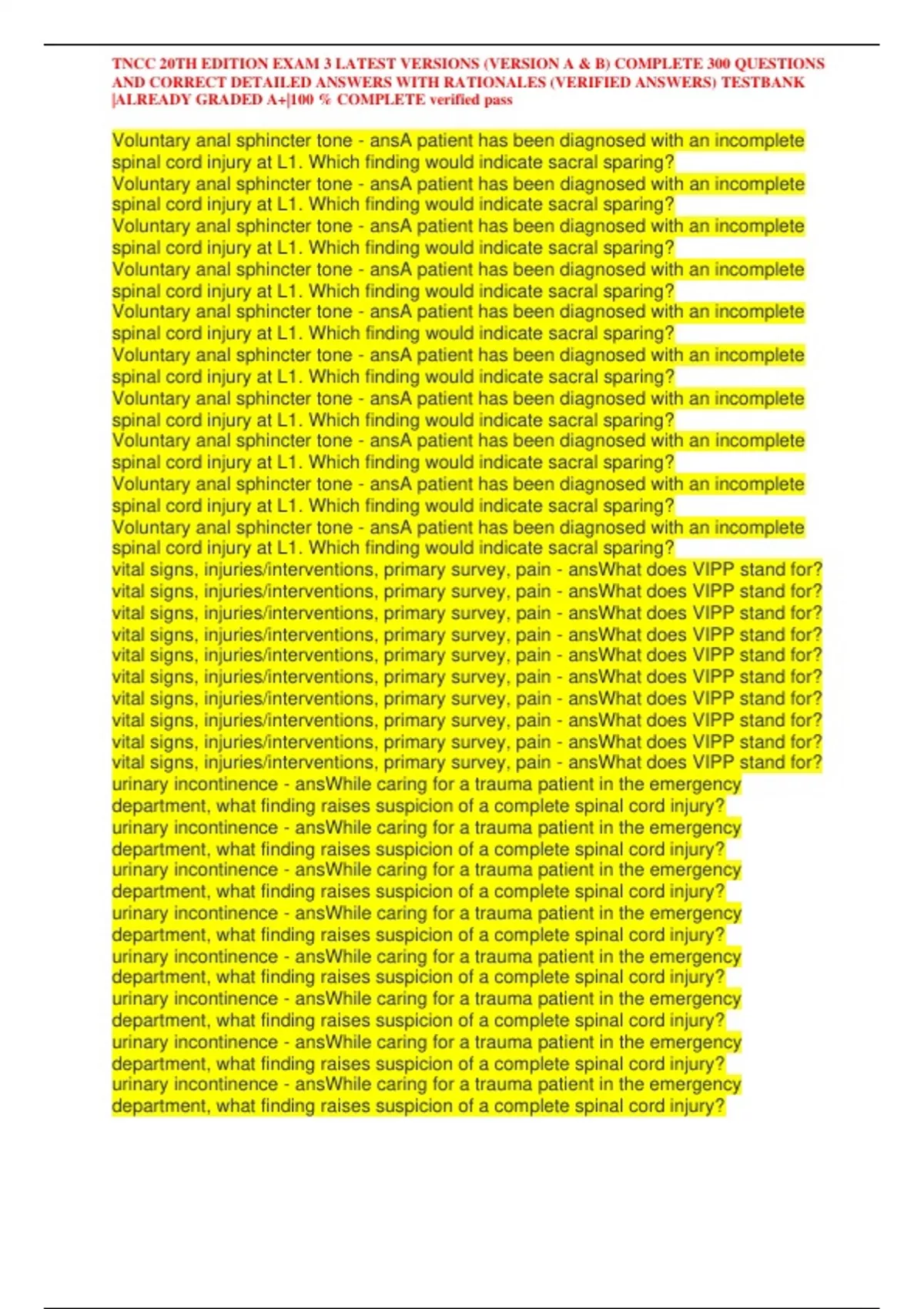 TNCC 20TH EDITION EXAM 3 LATEST VERSIONS (VERSION A & B) COMPLETE 300 QUESTIONS