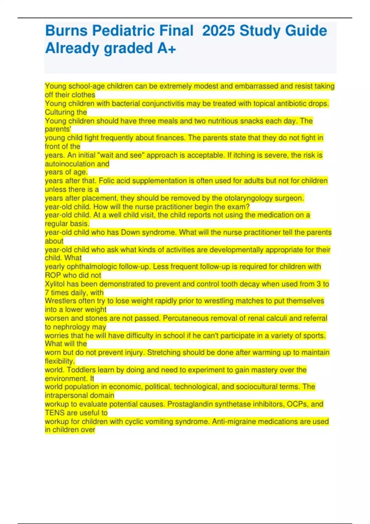 Burns Pediatric Final Exam 2025 Study Guide ALREADY GRADED A+.pdf