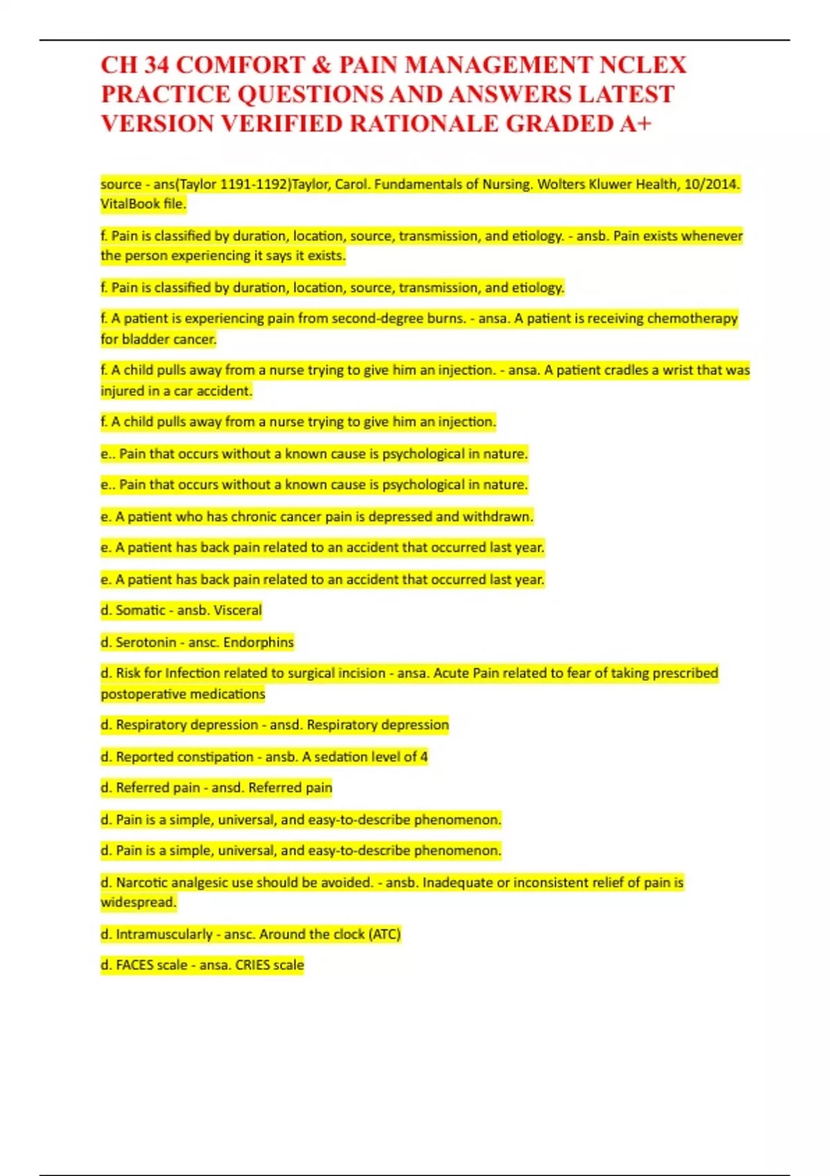 , CH 34 COMFORT & PAIN MANAGEMENT NCLEX