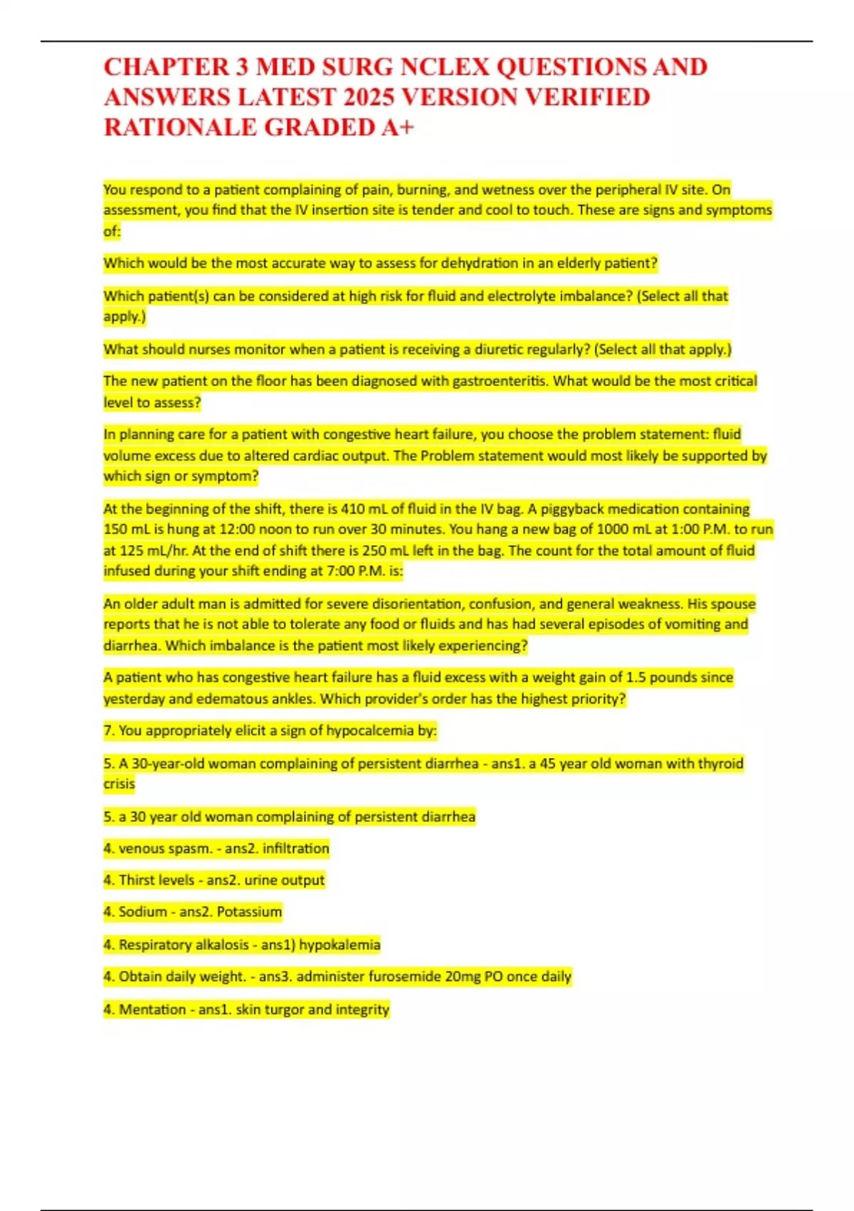 CHAPTER 3 MED SURG NCLEX QUESTIONS AND ANSWERS LATEST 2025 VERSION VERIFIED
