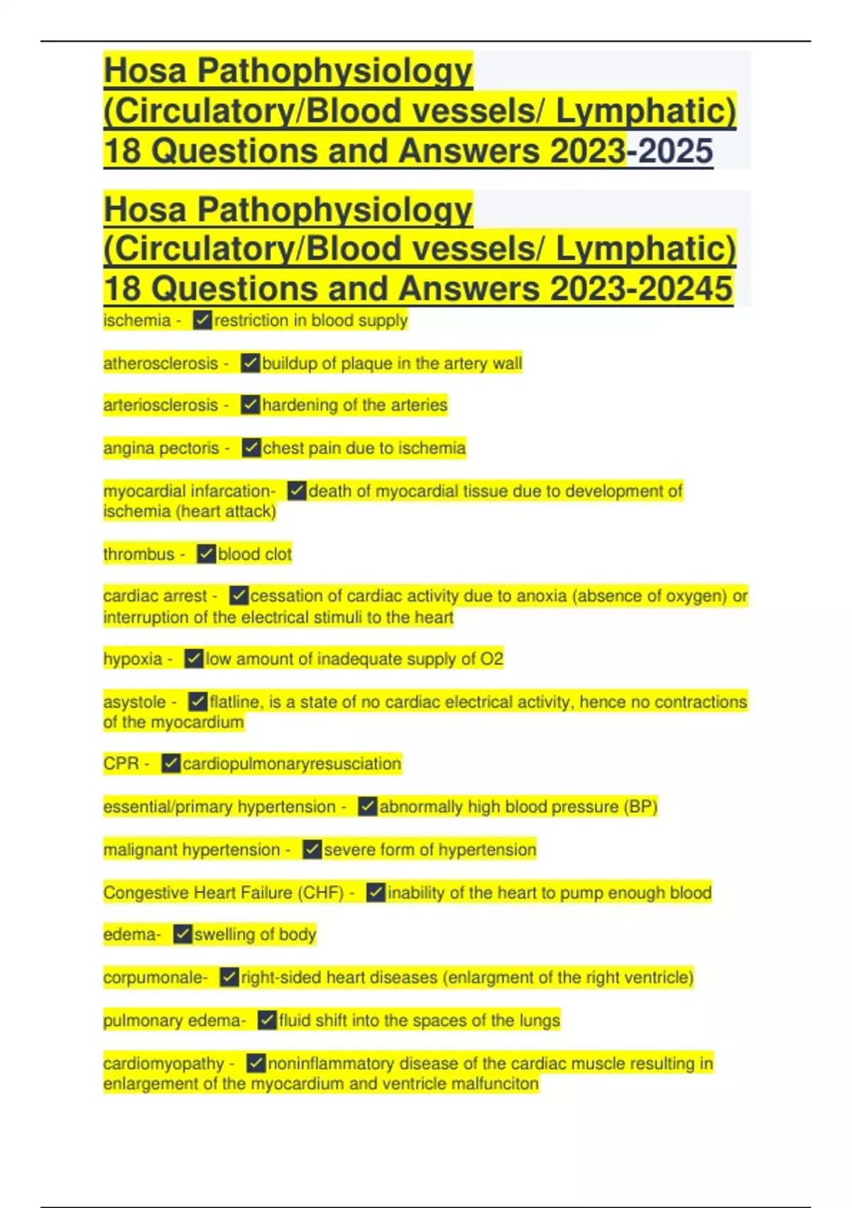 Congestive Heart Failure (CHF) - ✅inability of the heart to pump enough blood