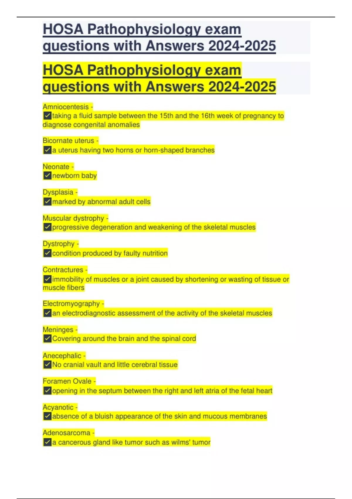 HOSA Pathophysiology exam