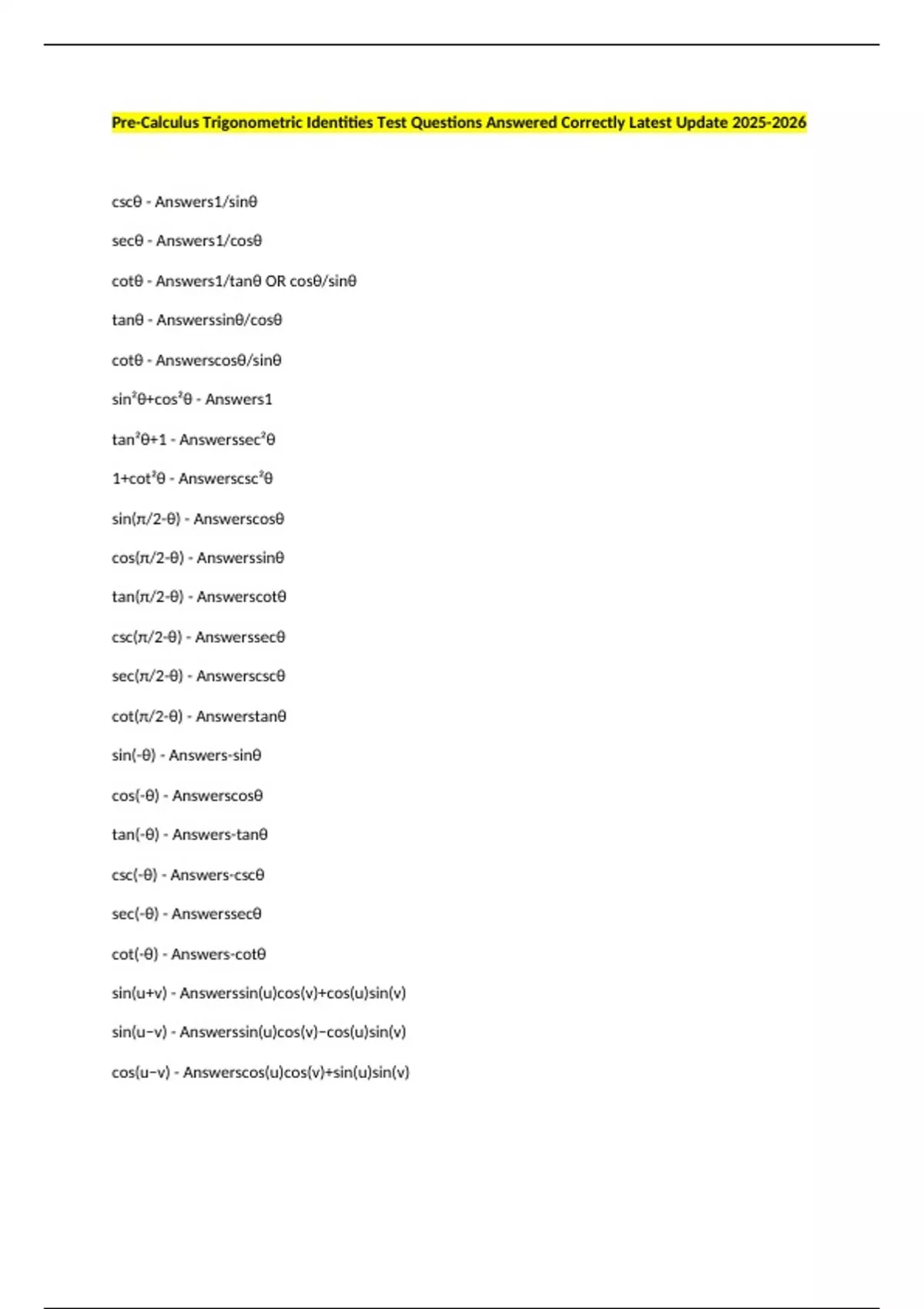 sin(-θ) - Answers-sinθ