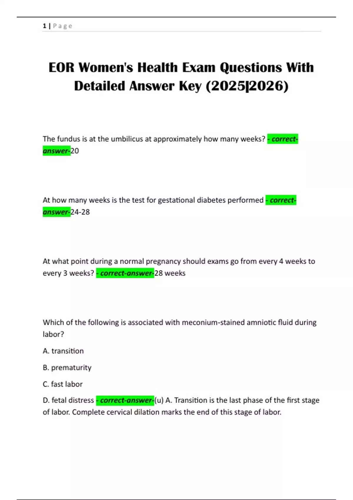 EOR Women's Health Exam Questions With Detailed Answer Key (2025|2026)