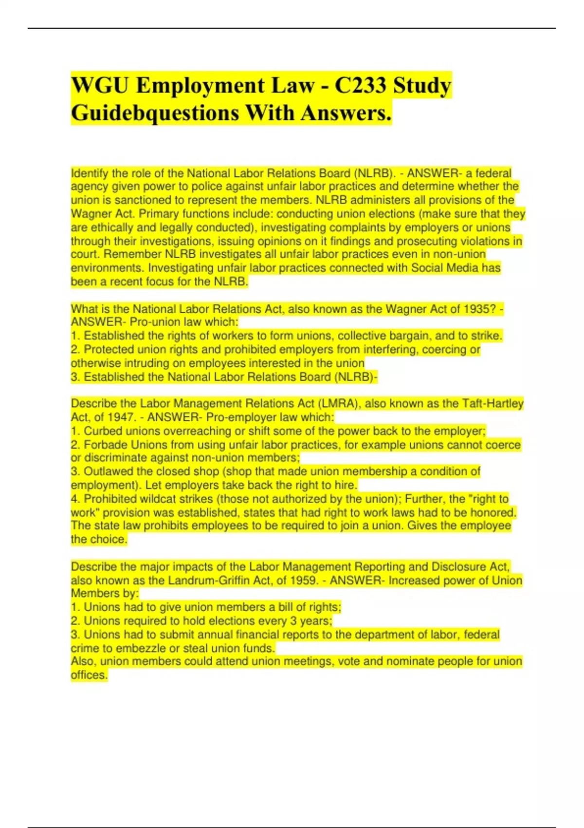 Identify the role of the National Labor Relations Board (NLRB). - ANSWER- a federal