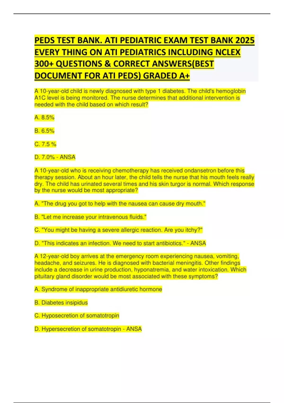 DOCUMENT FOR ATI PEDS) GRADED A+