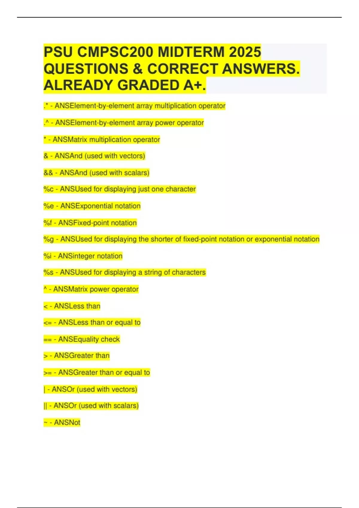 PSU CMPSC200 MIDTERM 2025 QUESTIONS & CORRECT ANSWERS. ALREADY GRADED A+..pdf