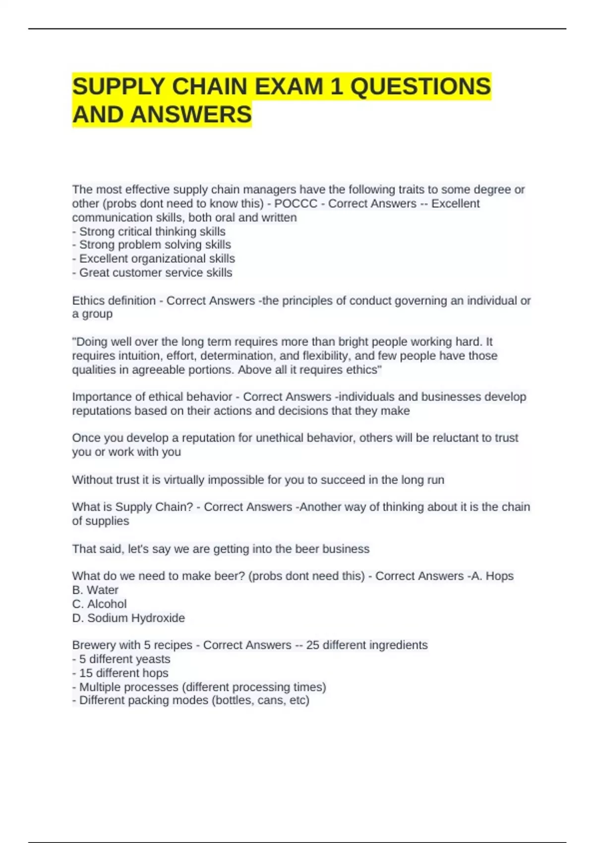 SUPPLY CHAIN EXAM 1 QUESTIONS AND ANSWERS