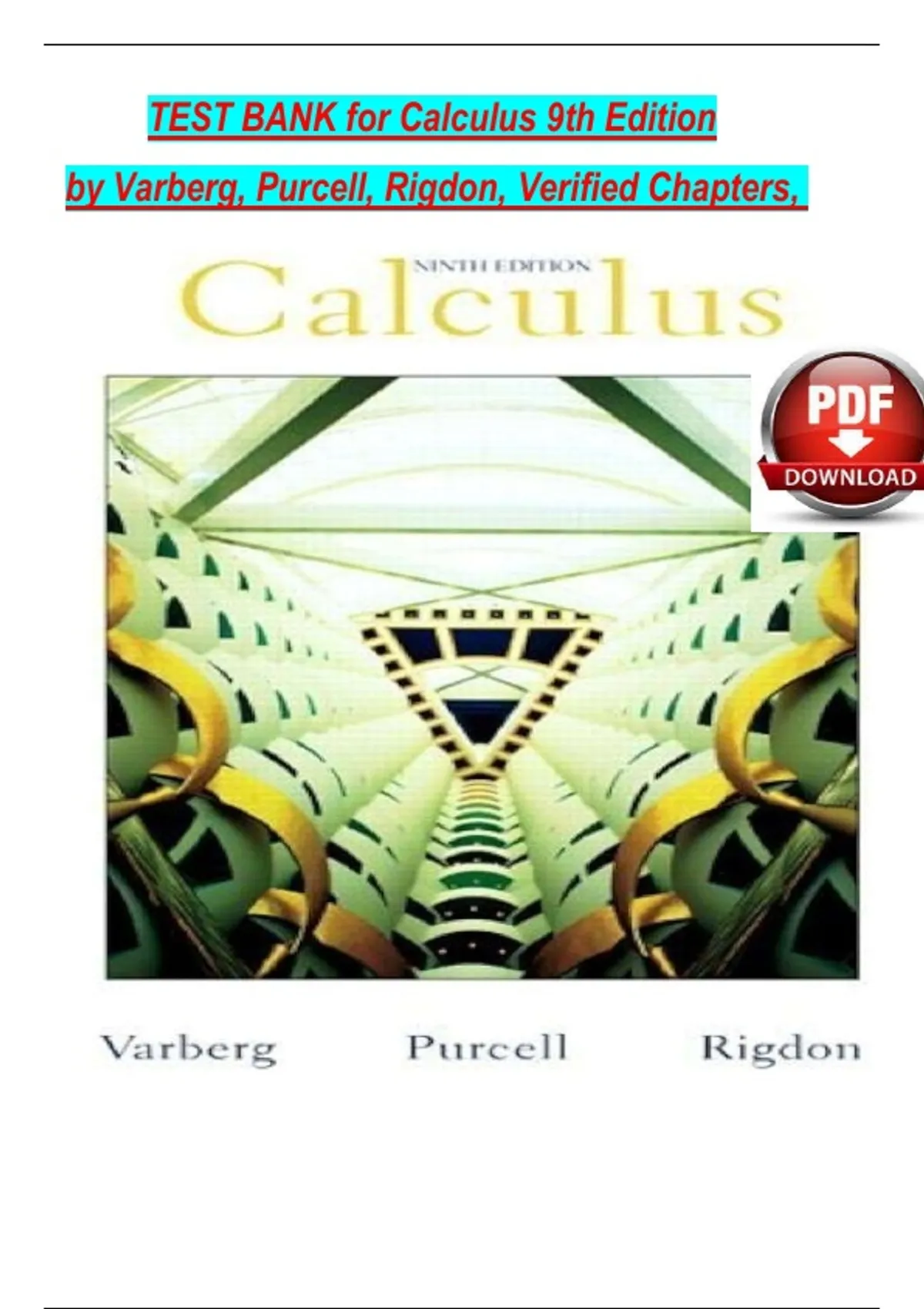 TEST BANK for Calculus 9th Edition by Varberg, Purcell and Rigdon, all Chapters covered ISBN: 9780131429246