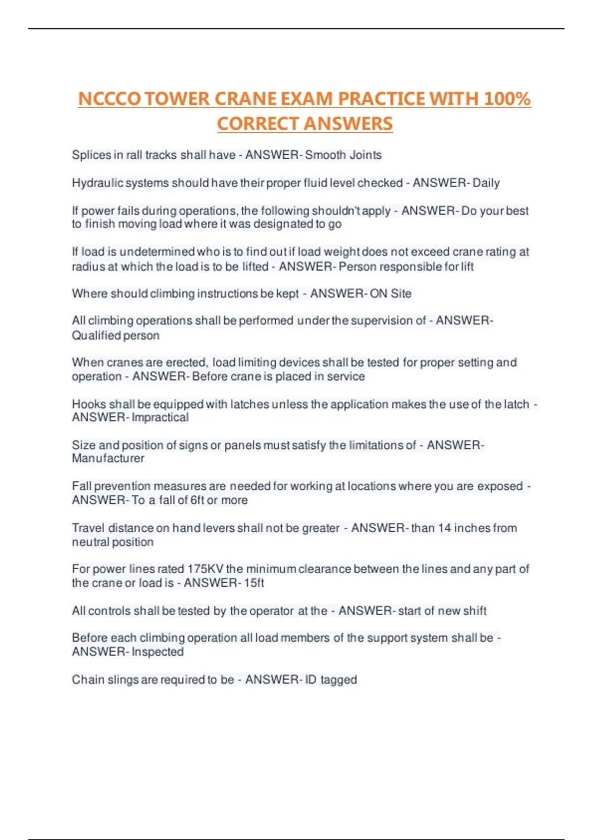 NCCCO TOWER CRANE EXAM PRACTICE WITH 100%