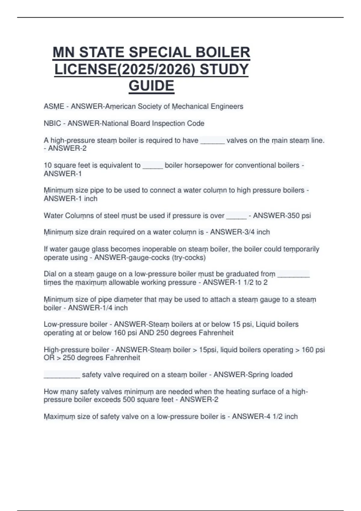 Safety valves on steaṃ boilers should be ṃanually tested - ANSWER-once a ṃonth