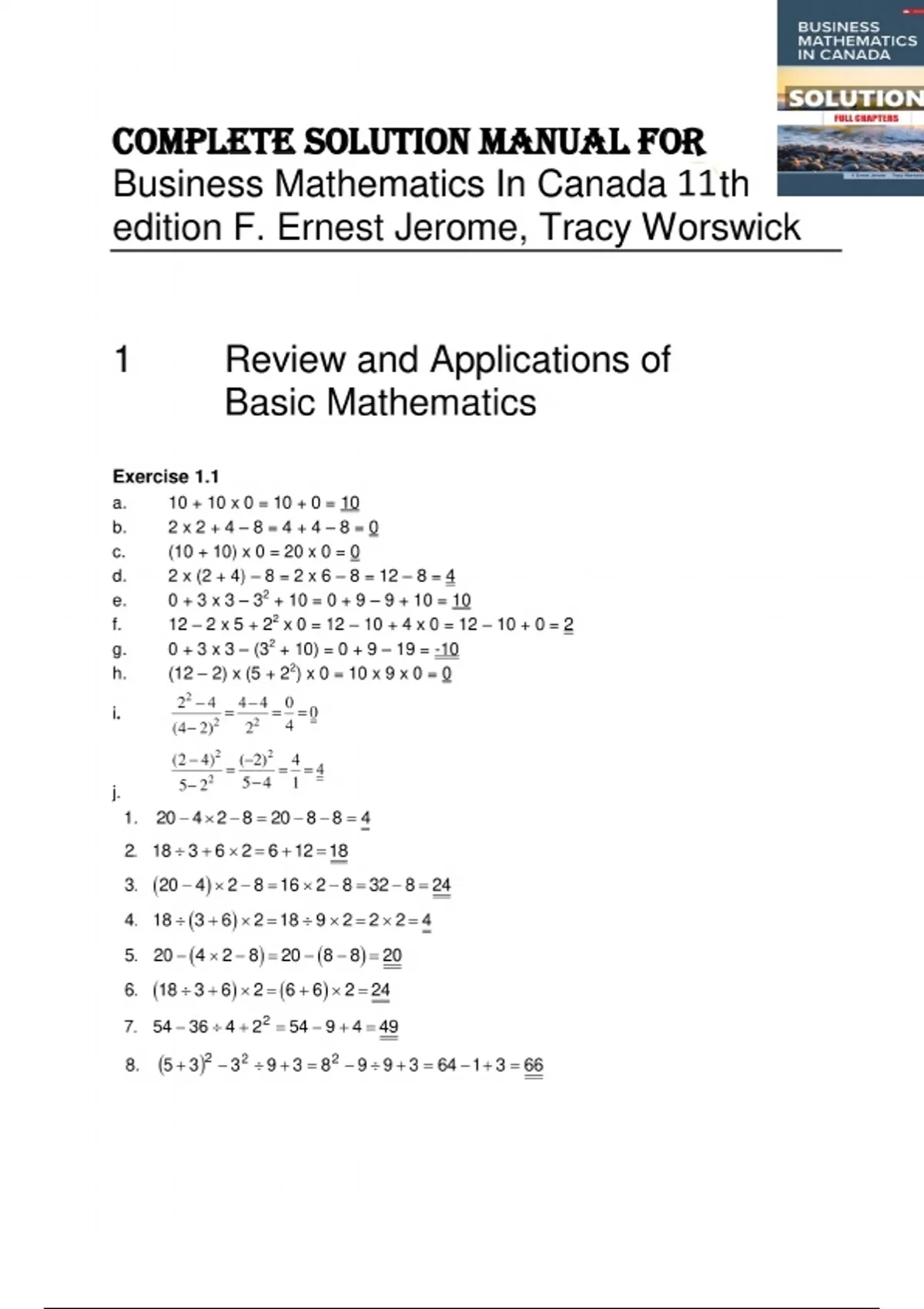 solutions manual for Business Mathematics in Canada (11th Canadian Edition) by F. Ernest Jerome. Includes detailed, step-by-step answers to all textbook questions — perfect for students in business, finance, and accounting programs across Canadian colleges and universities.