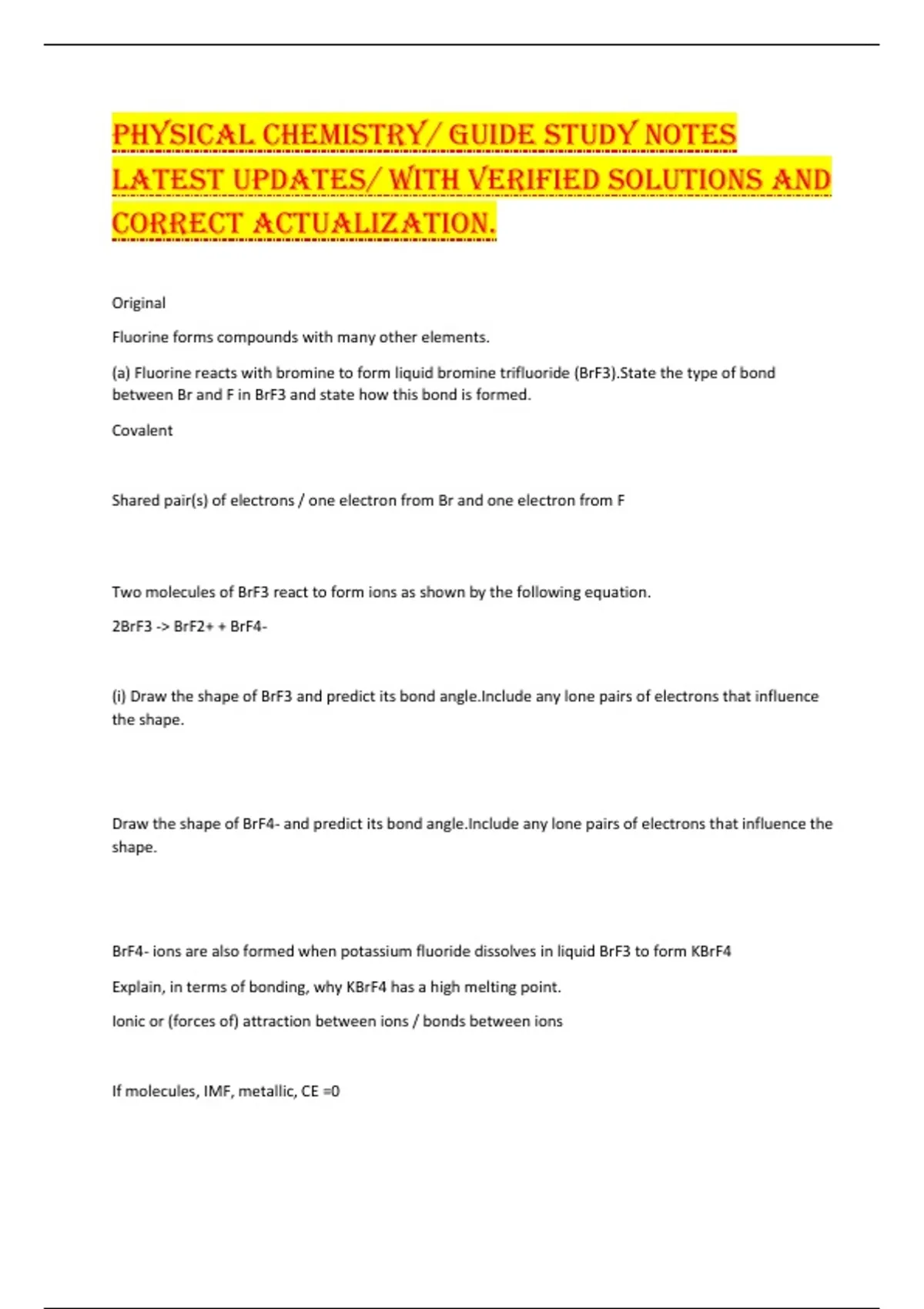 PHYSICAL CHEMISTRY/ GUIDE STUDY NOTES LATEST UPDATES/ WITH VERIFIED SOLUTIONS AND CORRECT ACTUALIZATION.