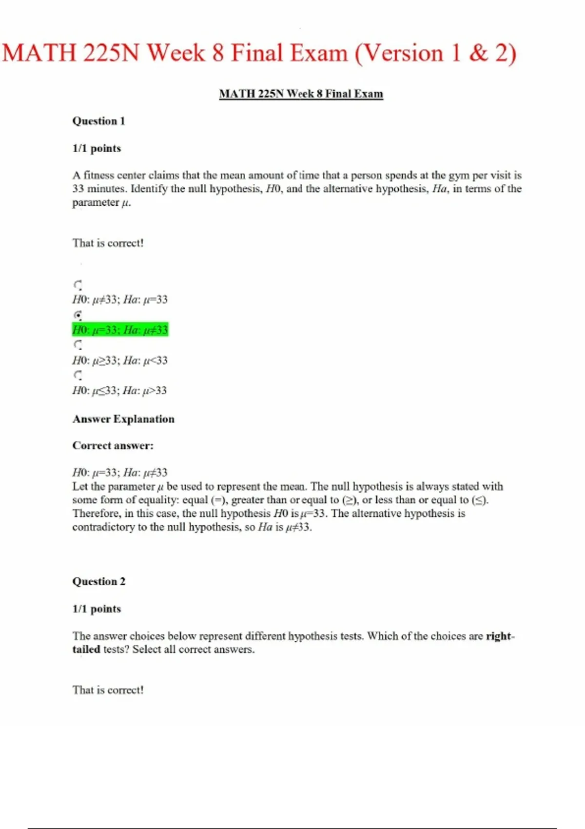 MATH 225N Week 8 Final Exam (Version 1 & 2) Questions and Answers.MATH 225N Week 8 Final Exam (Version 1 & 2) Questions and Answers.
