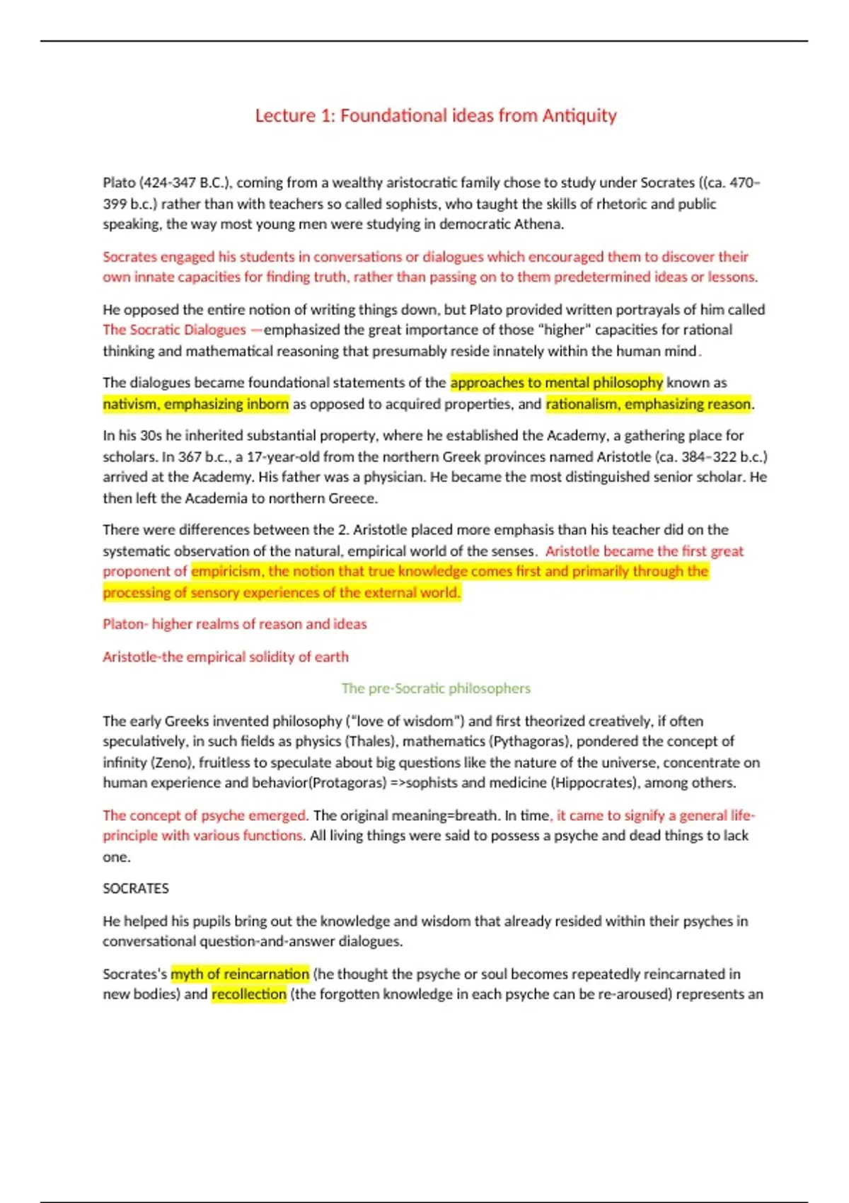 Summary - Introduction to Psychology & History of Psychology (595102-B-5)-Grade 10