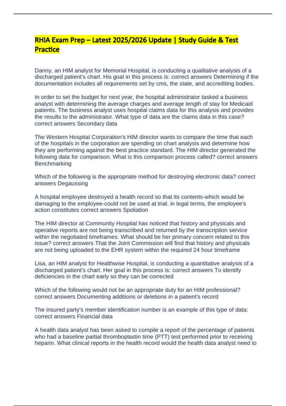RHIA Exam Prep – Latest 2025/2026 Update | Study Guide & Test