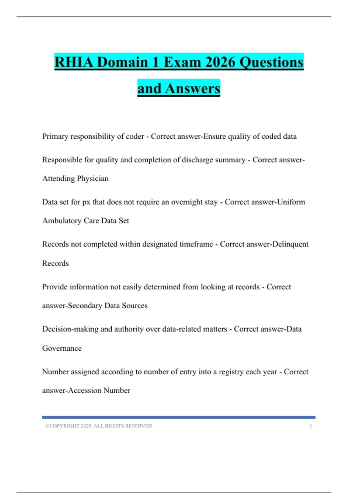 RHIA Domain 1 Exam 2026 Questions and Answers