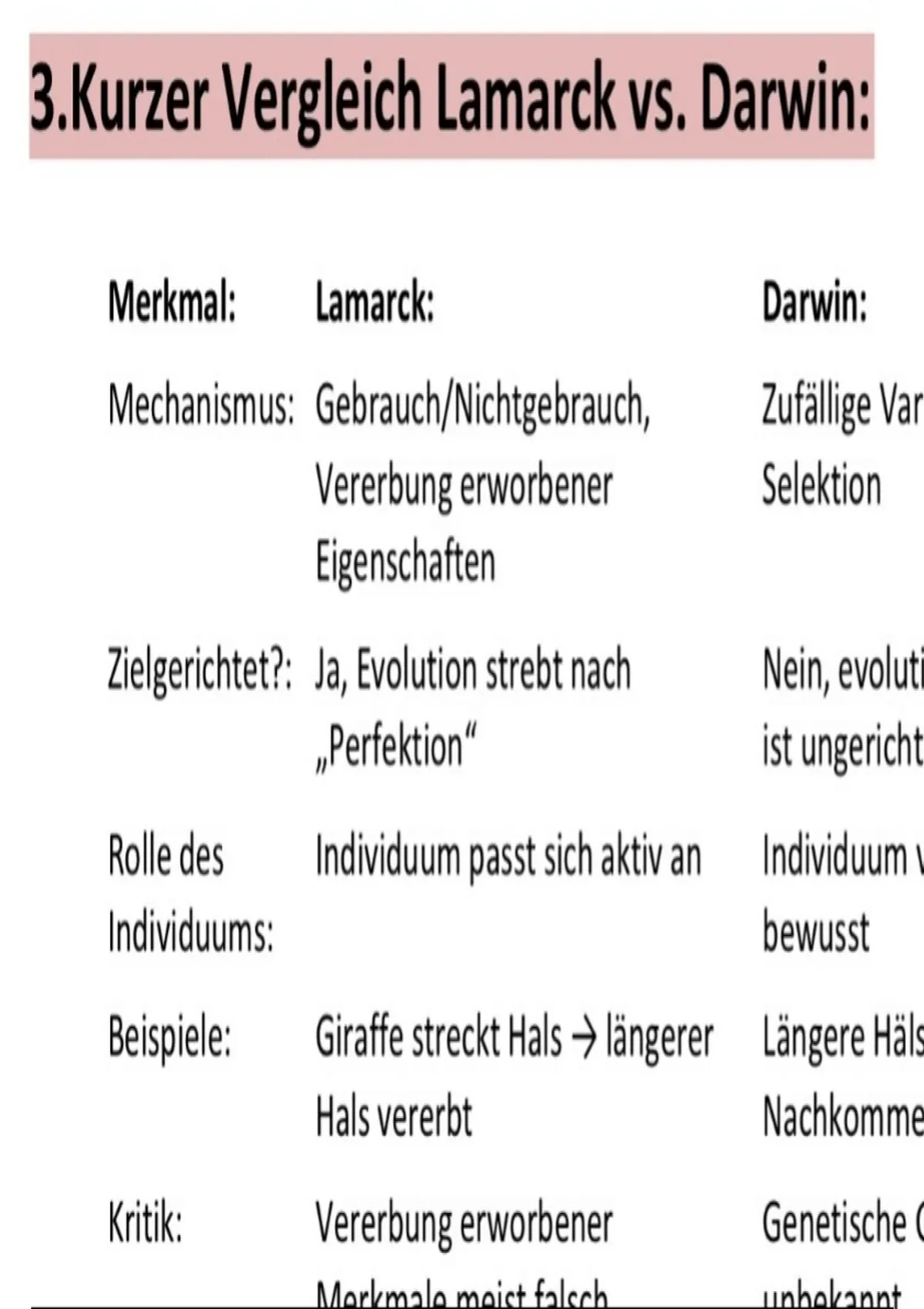 Zusammenfassung Evolutionstheorien: Lamarck vs. Darwin Teil 3