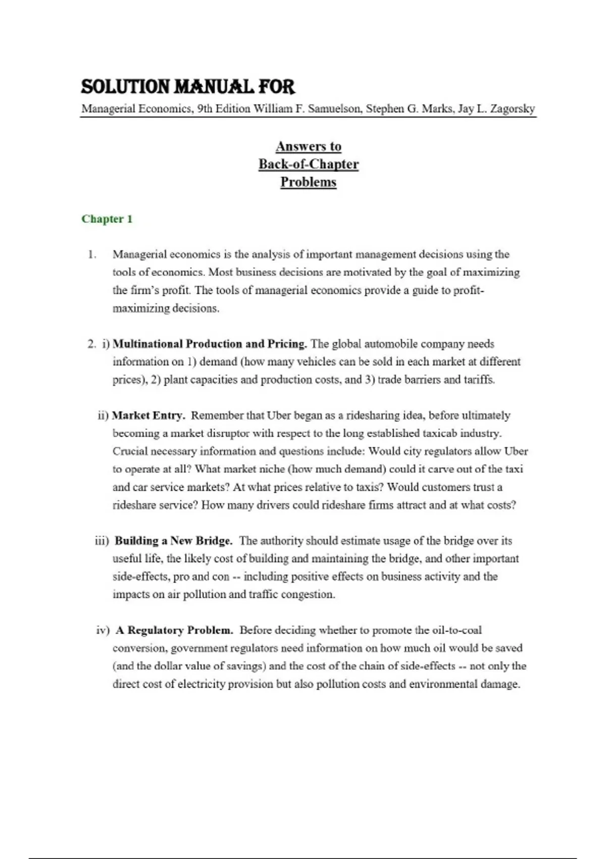 SOLUTION MANUAL FOR Managerial Economics, 9th Edition William F. Samuelson, Stephen G. Marks, Jay L. Zagorsky