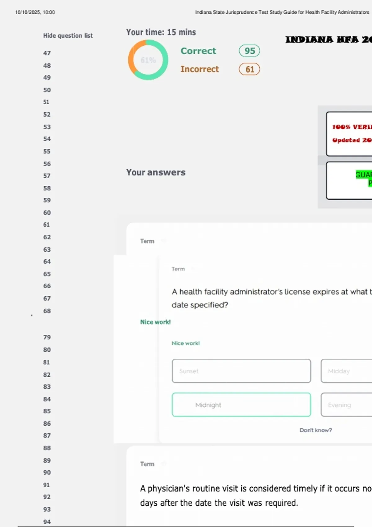 ,10/10/2025, 10:00 Indiana State Jurisprudence Test Study Guide for Health Facility Administrators