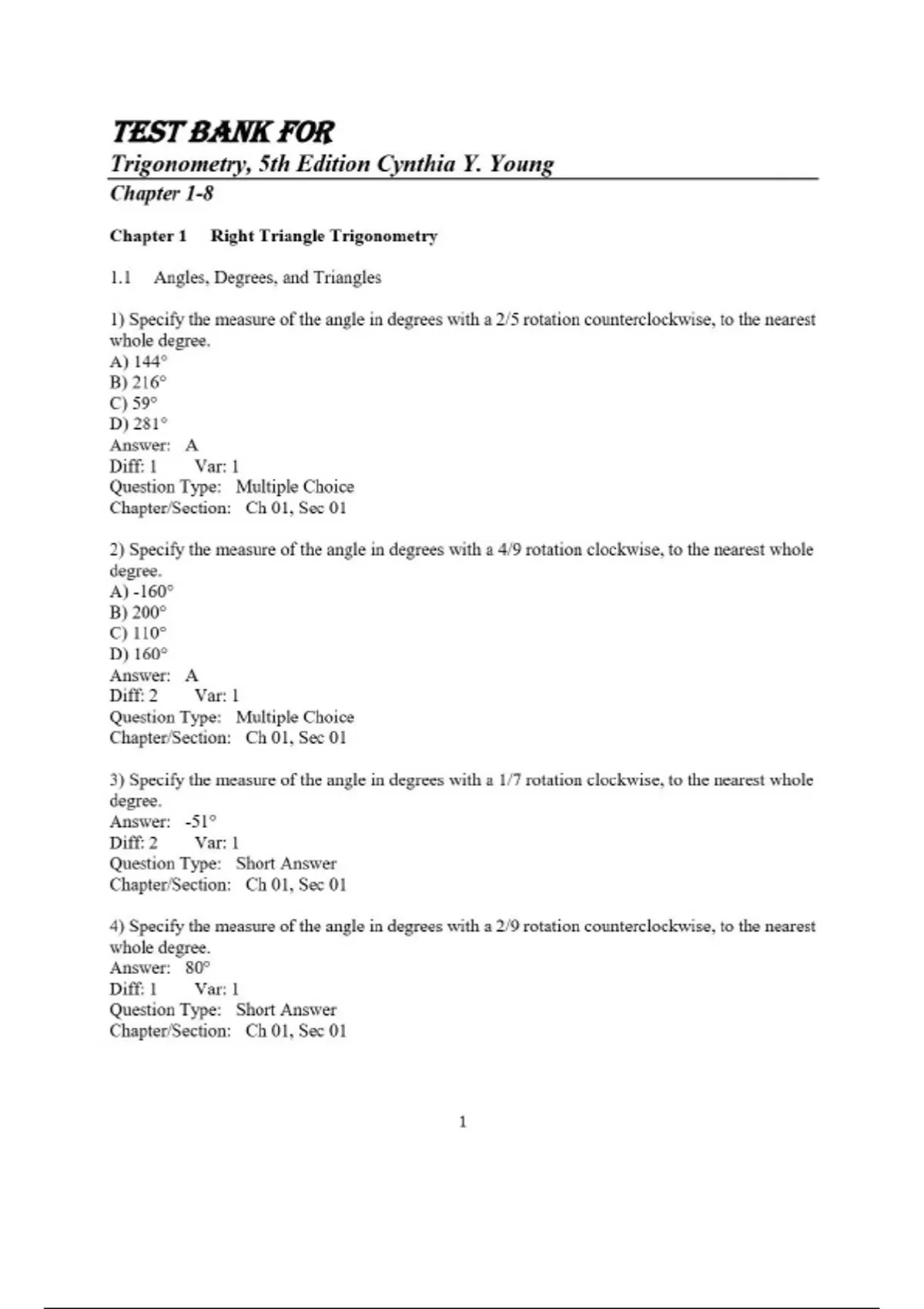 Test Bank for Trigonometry, 5th Edition by Cynthia Y. Young