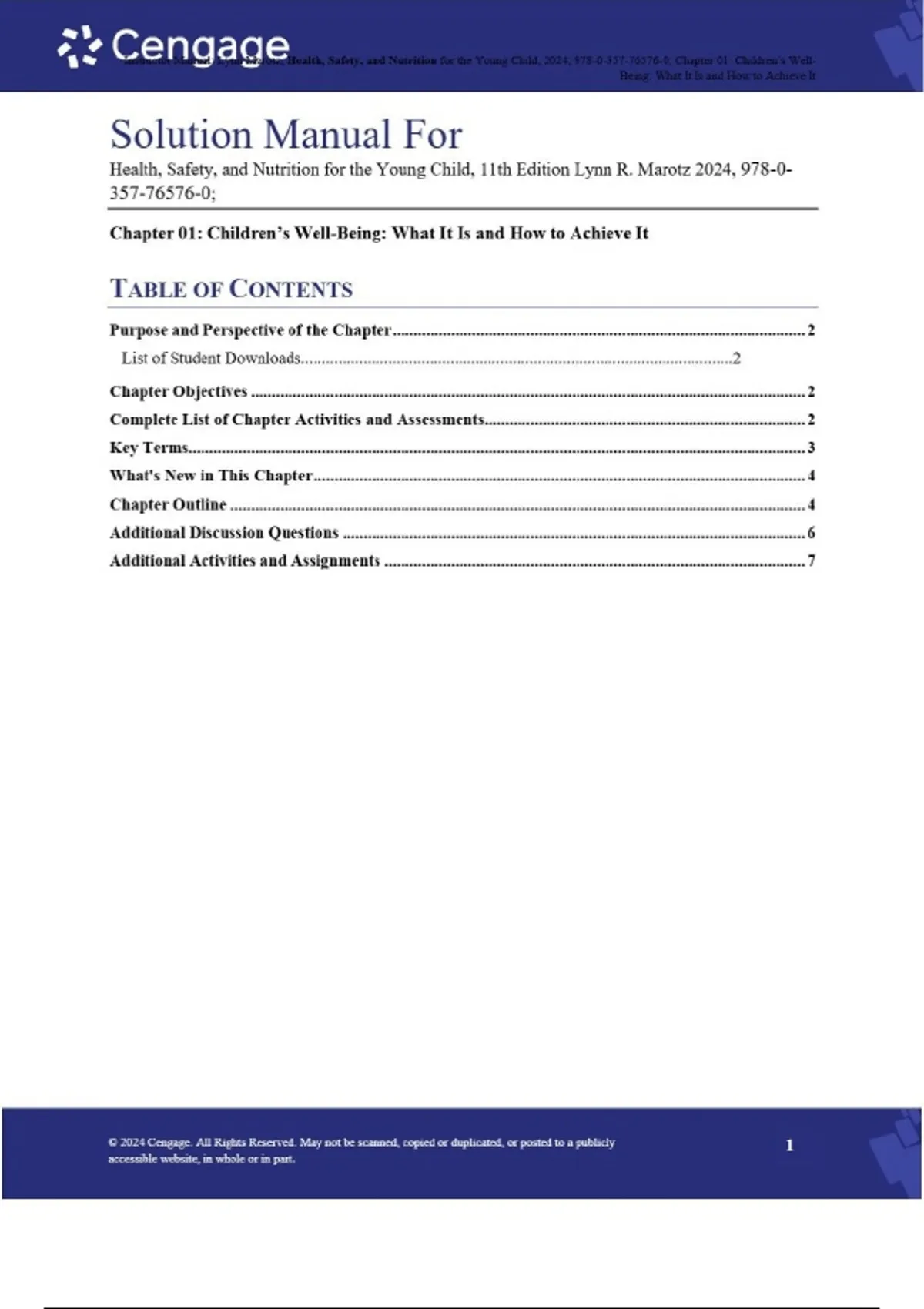 Solution Manual For Health, Safety, and Nutrition for the Young Child, 11th Edition Lynn R. Marotz 2024, 978-0- 357-76576-0;
