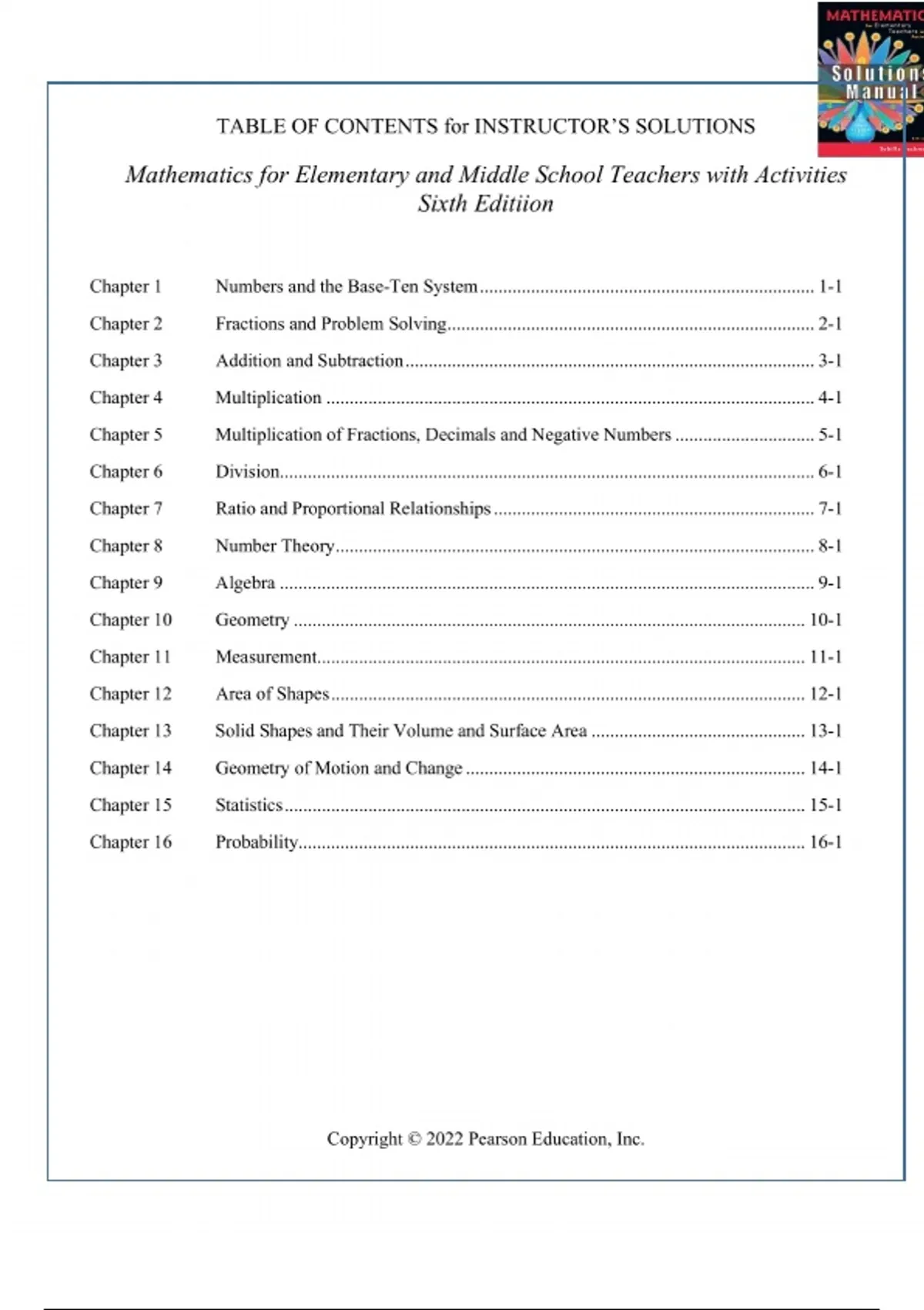 Solutions Manual for Mathematics for Elementary and Middle School Teachers with Activities 5th Edition | All Chapters Covered, 100% Original Verified, A+ Grade