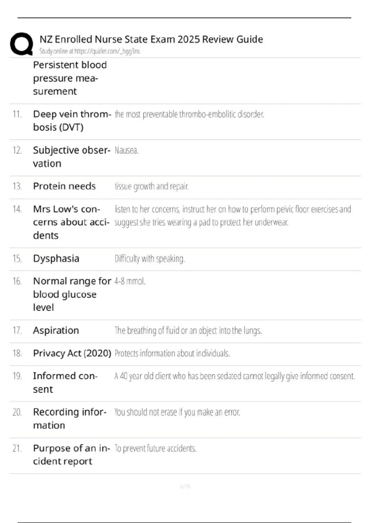 NZ Enrolled Nurse State Exam 2025 Review Guide Persistent blood pressure measurement Deep vein throm- the most preventable thrombo-embolitic disorder. bosis (DVT) Subjective obser- Nausea. vation 13. Protein needs tissue growth and repair.
