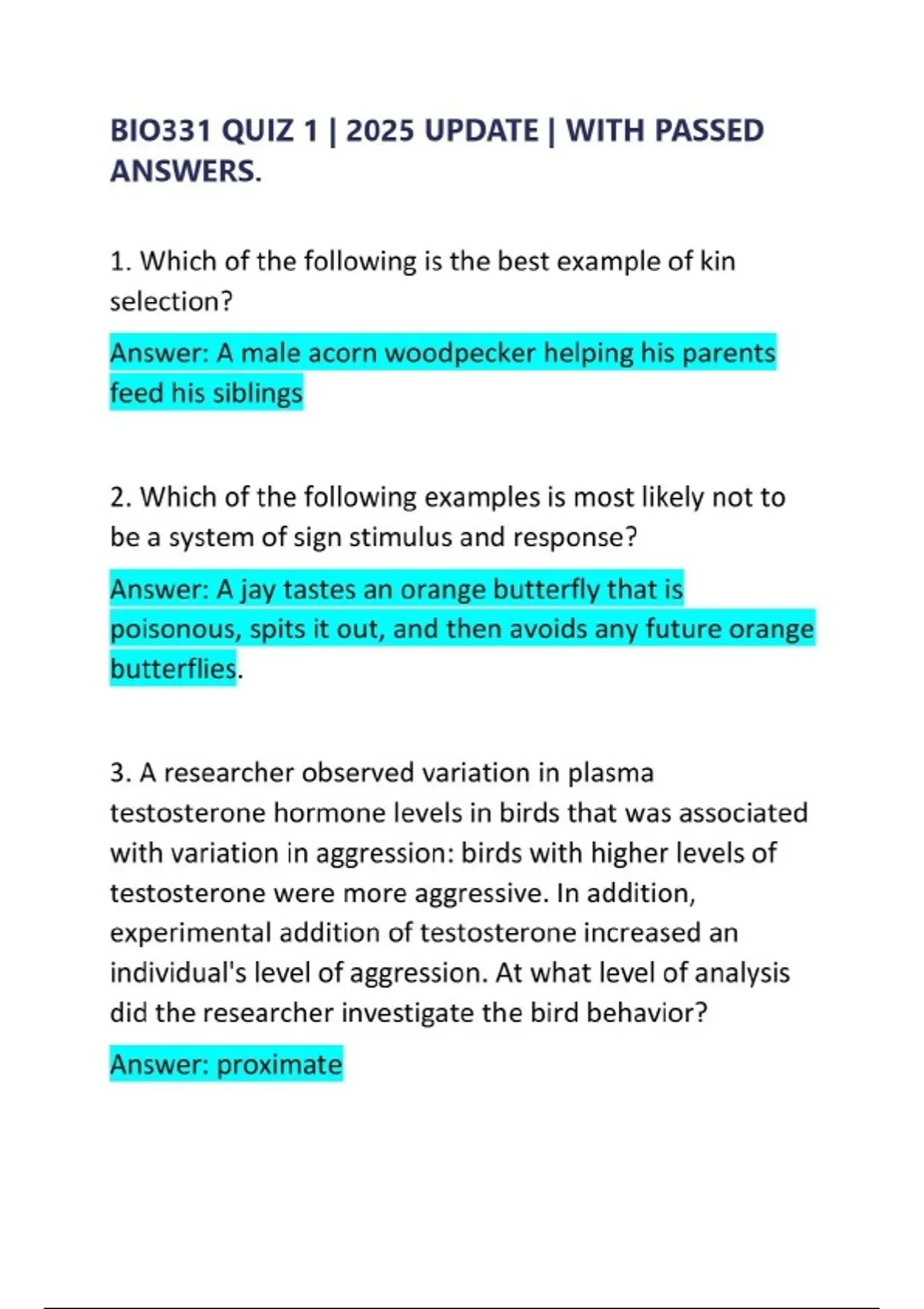 BIO331 QUIZ 1 2025 UPDATE WITH PASSED ANSWERS