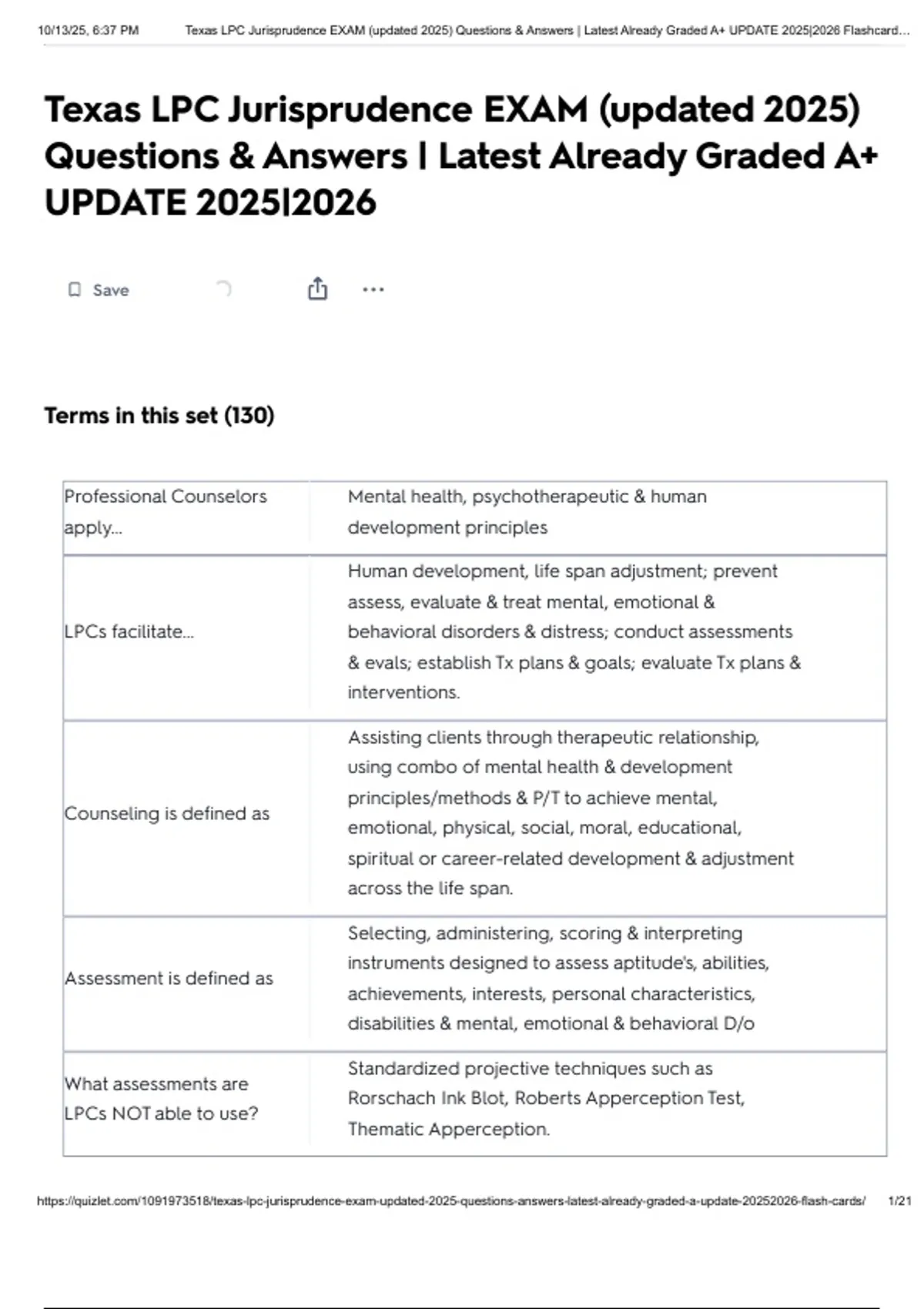 https://quizlet.com/1091973518/texas-lpc-jurisprudence-exam-updated-2025-questions-answers-latest-already-graded-a-update-20252026-flash-cards/ 1/21