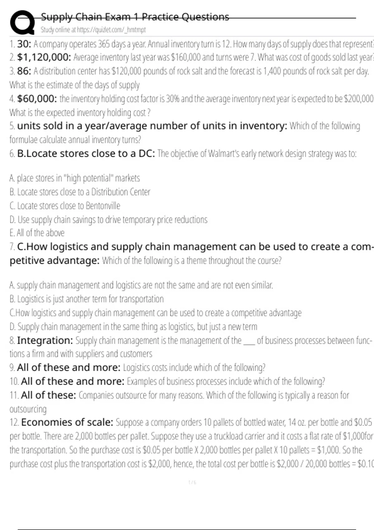 Supply Chain Exam 1 Practice Questions Exam Questions and Answers 100% Pass |Already Graded A+| Verified and Updated |Actual 2025/2026 Cheat Sheet
