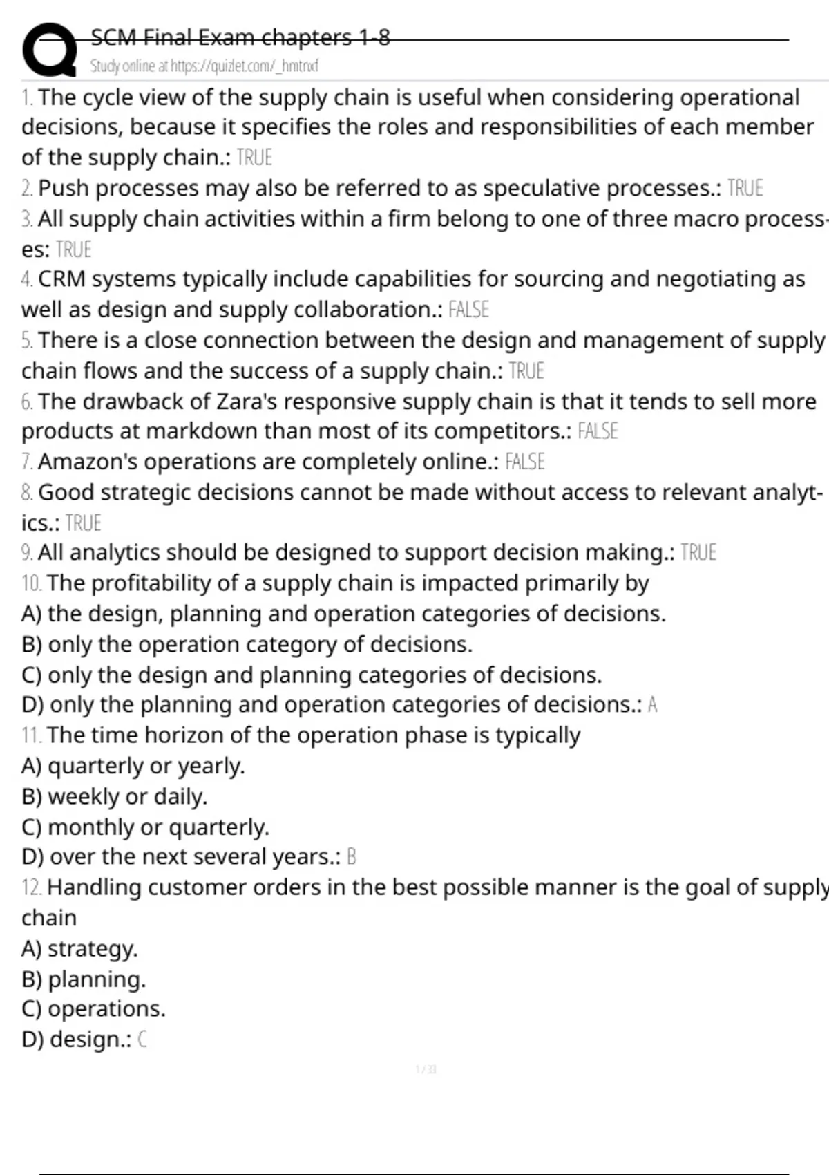 , SCM Final Exam chapters 1-8