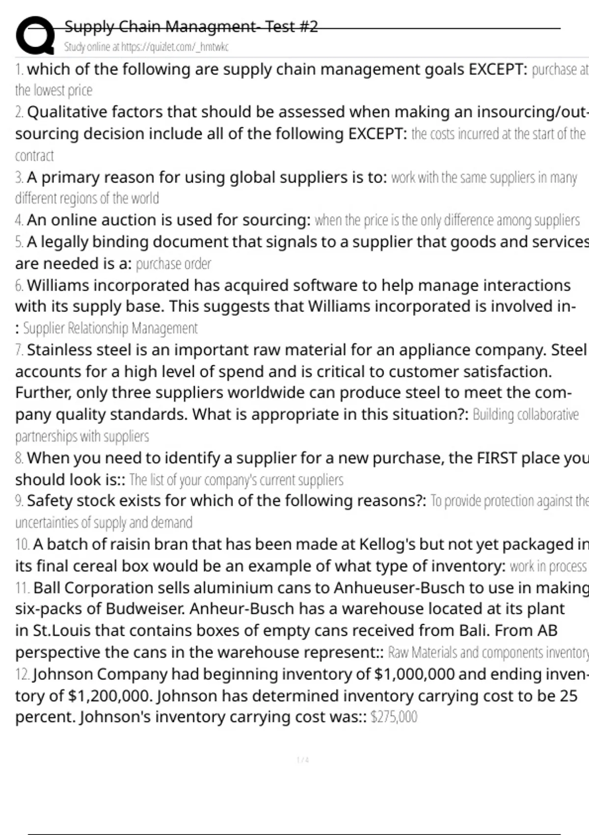 Supply Chain Managment- Test #2 Exam Questions and Answers 100% Pass |Already Graded A+| Verified and Updated |Actual 2025/2026 Cheat Sheet