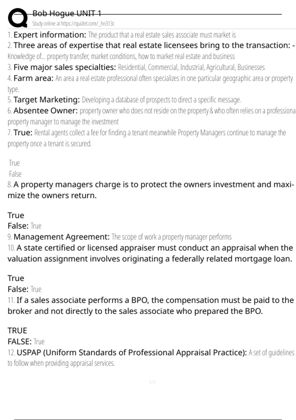 7. True: Rental agents collect a fee for finding a tenant meanwhile Property Managers continue to manage the
