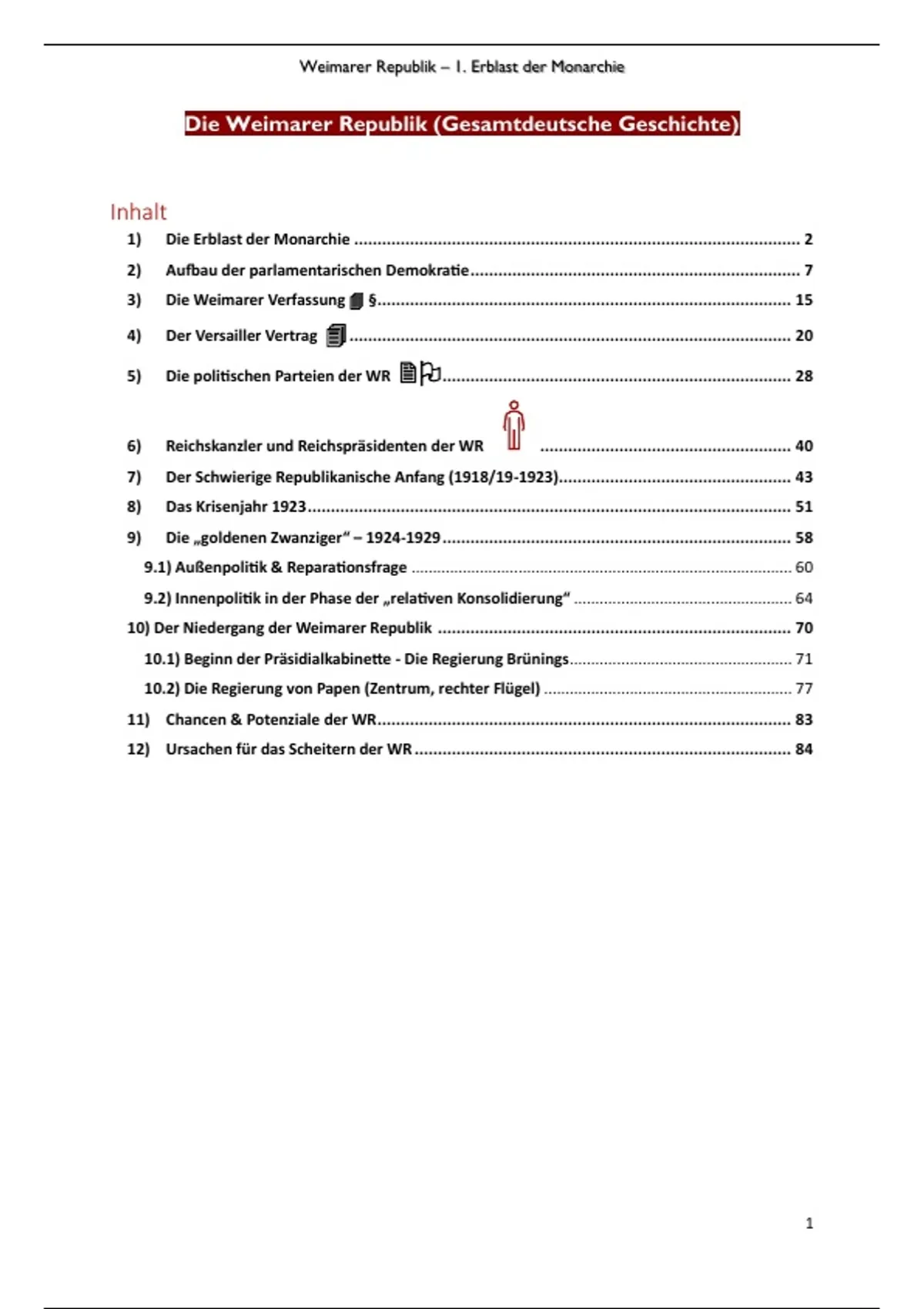 3) Die Weimarer Verfassung §......................................................................................... 15