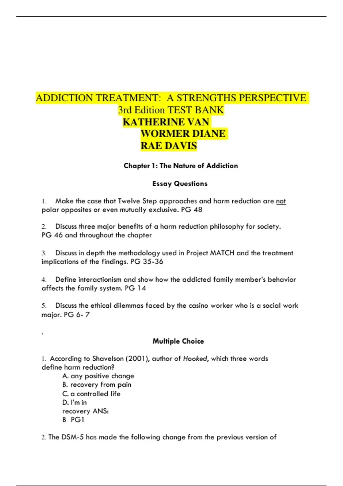 Test Bank for Addiction Treatment: A Strengths Perspective (3rd Edition, Katherine van Wormer & Diane Rae Davis)