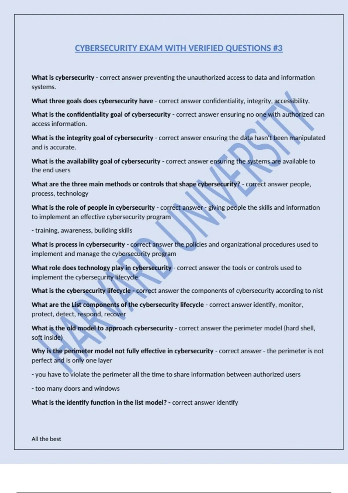CYBERSECURITY EXAM WITH VERIFIED QUESTIONS #3