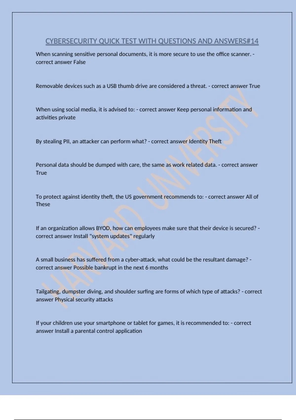CYBERSECURITY QUICK TEST WITH QUESTIONS AND ANSWERS#14