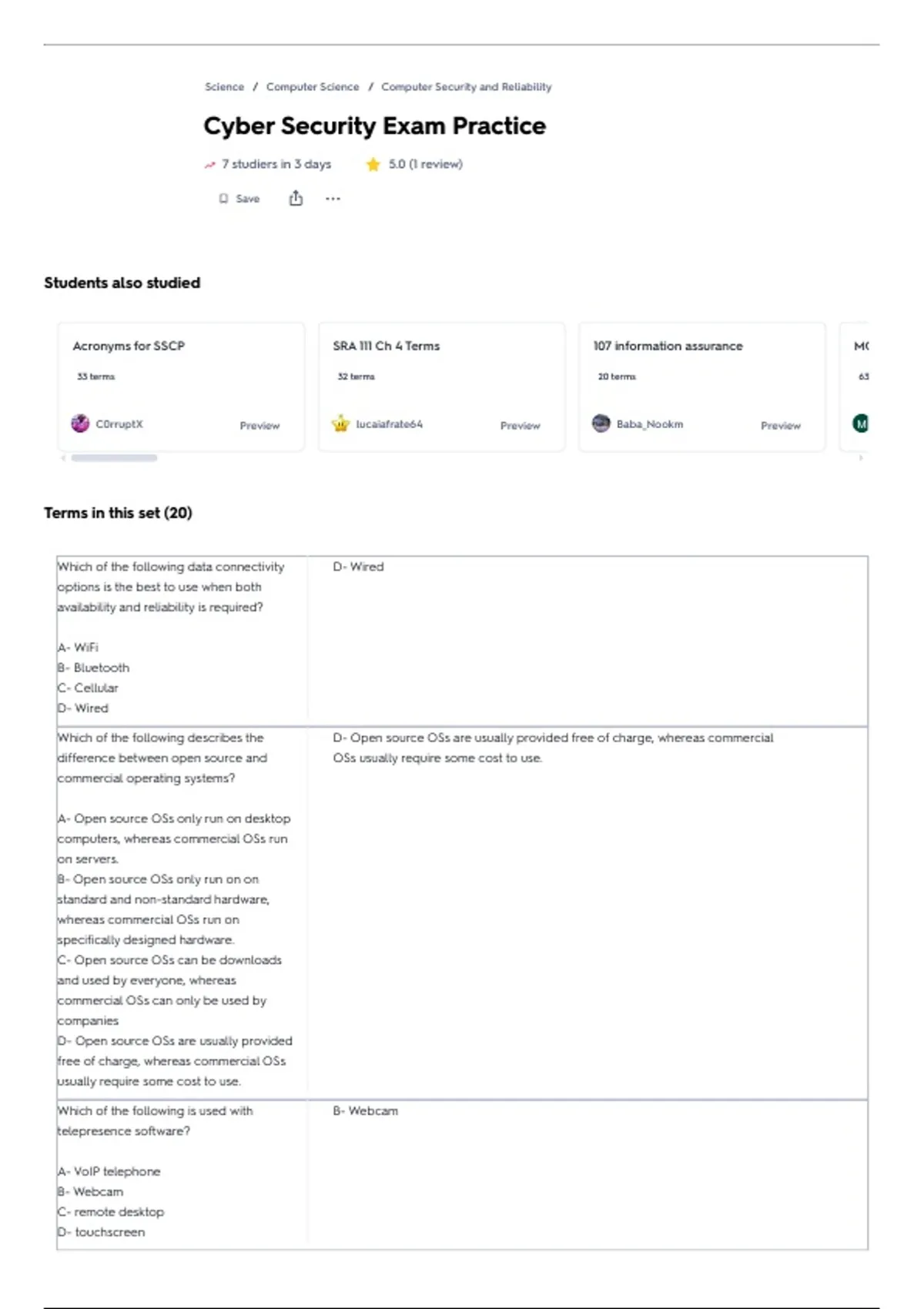 Freshen up your cybersecurity and IT fundamentals exam with this essential practice questions and answer pack. This resource is perfectly tailored for students preparing for CompTIA A+, Network +, Security+, or similar certification and academic exams. This compilation provides a clear, concise review of key topics through multiple-choice questions and verified answers, helping you to test your knowledge and identify areas for improvement.