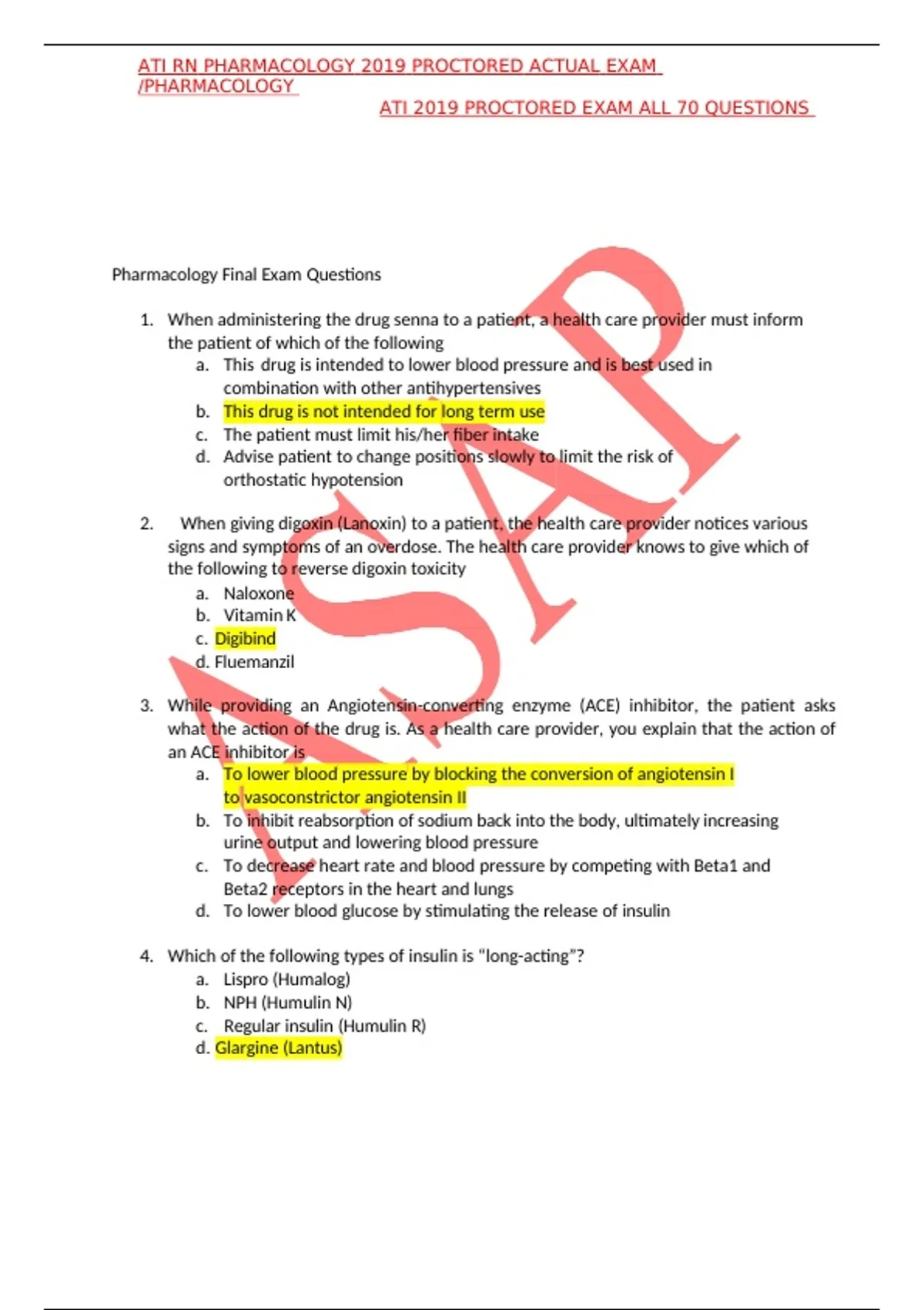 ATI RN PHARMACOLOGY 2019 PROCTORED ACTUAL EXAM PHARMACOLOGY ATI 2019 PROCTORED