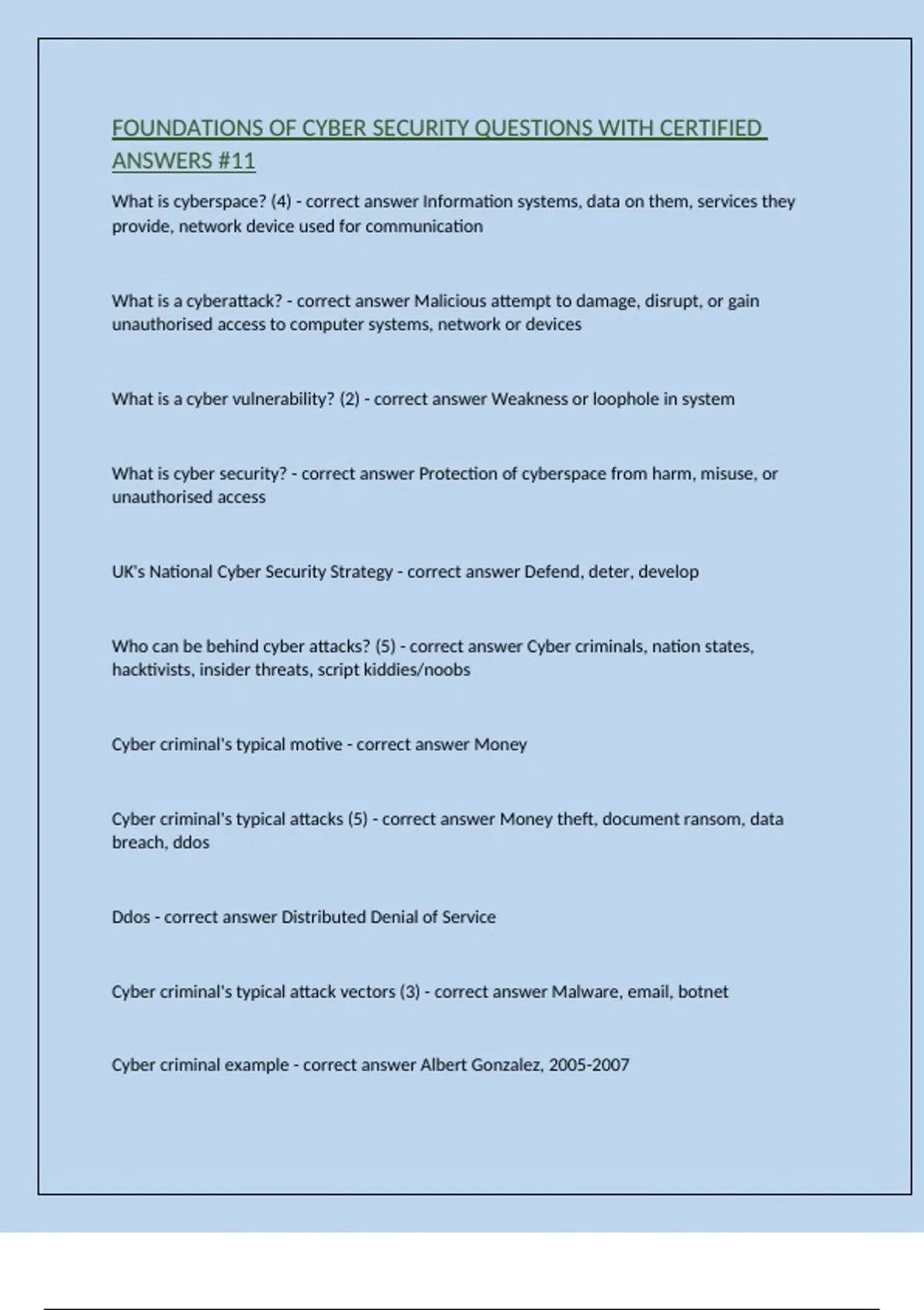 FOUNDATIONS OF CYBER SECURITY QUESTIONS WITH CERTIFIED