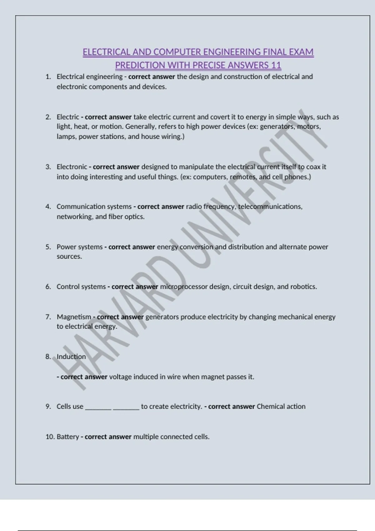 ELECTRICAL AND COMPUTER ENGINEERING FINAL EXAM PREDICTION WITH PRECISE ANSWERS