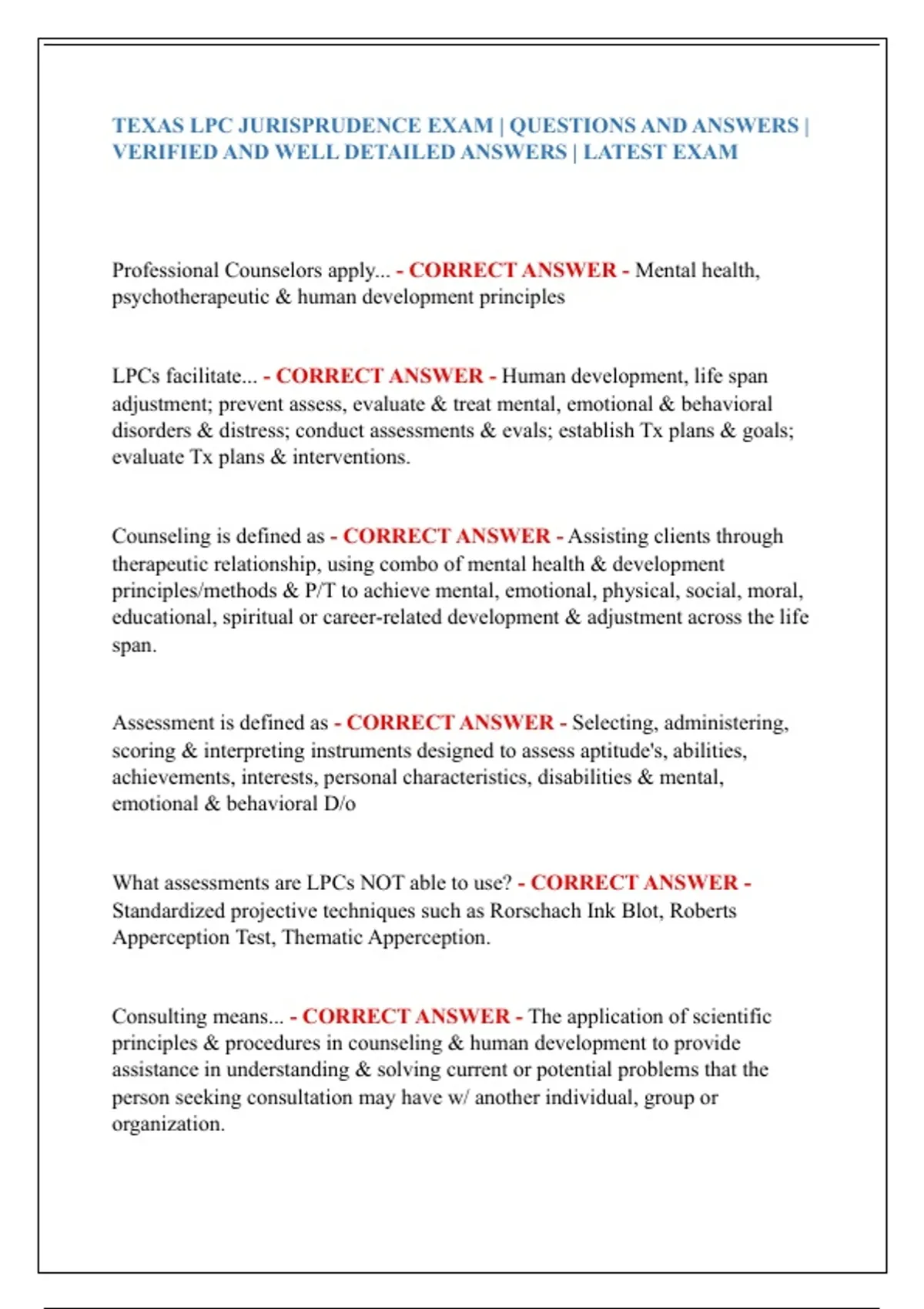 TEXAS LPC JURISPRUDENCE EXAM | QUESTIONS AND ANSWERS |