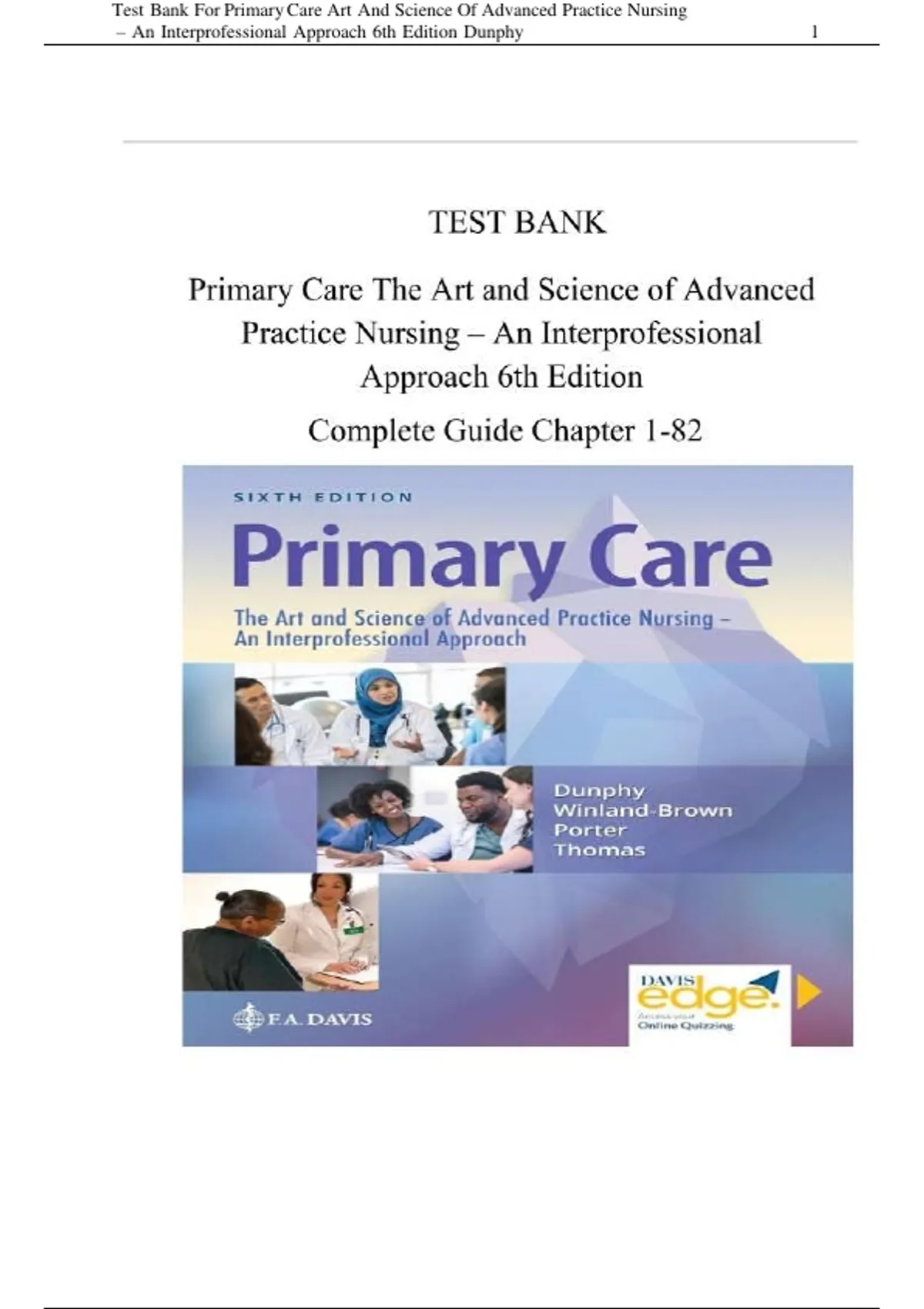 TEST BANK Primary Care The Art and Science of Advanced Practice Nursing – An Interprofessional Approach 6th Edition by Debera J. Dunphy| Complete Guide Chapter 1-82